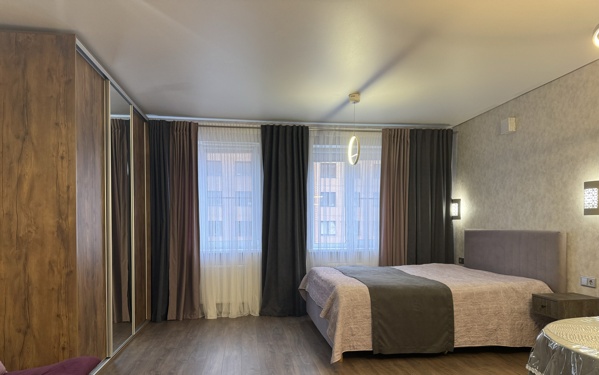 Есть возможность монтажа раздвижной перегородки для отделения спальной зоны.