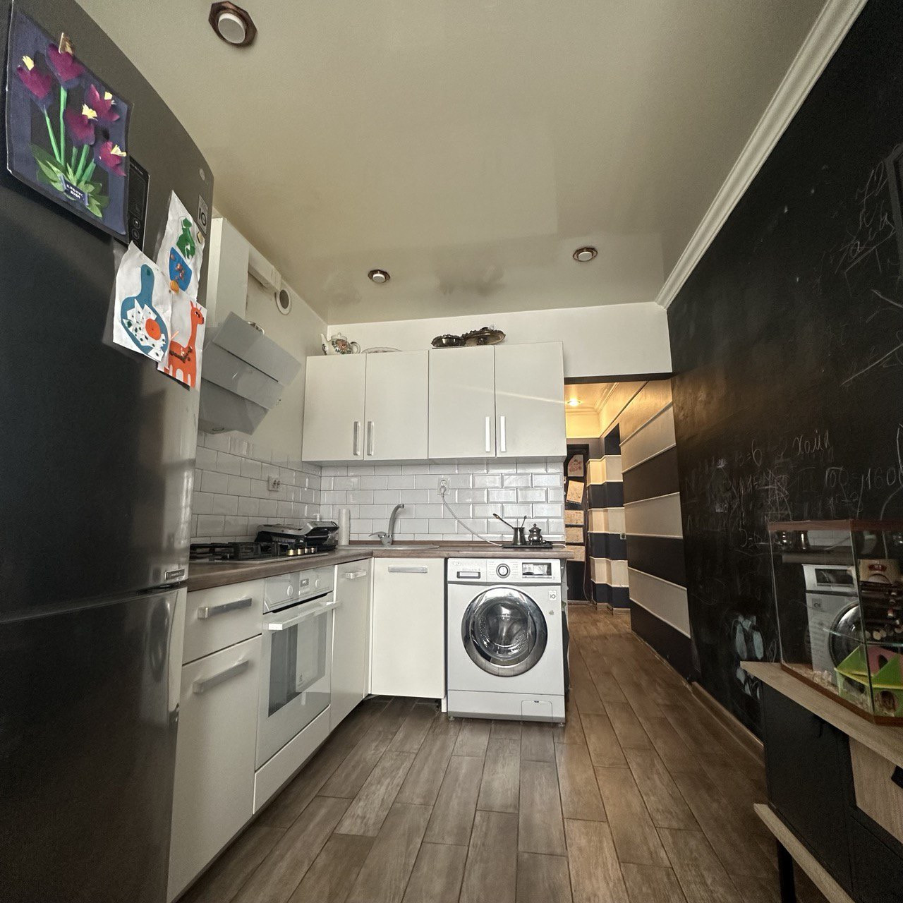Квартира теплая и очень солнечная. Кухня и зал увеличены за счет пристроек.