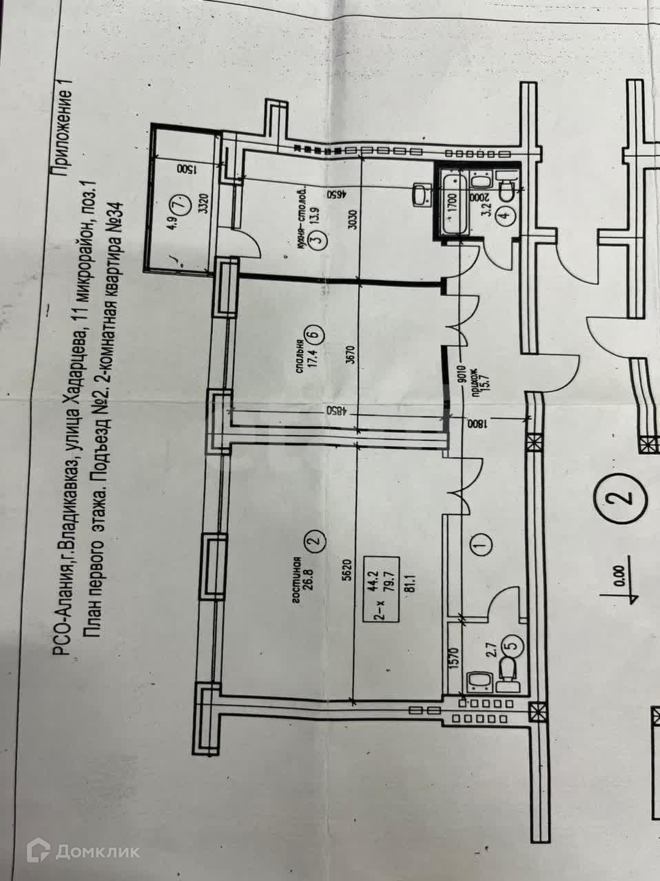 2-комнатная квартира, 80 м2, этаж 1 / 5, на продажу во Владикавказе, улица Хадарцева, 39