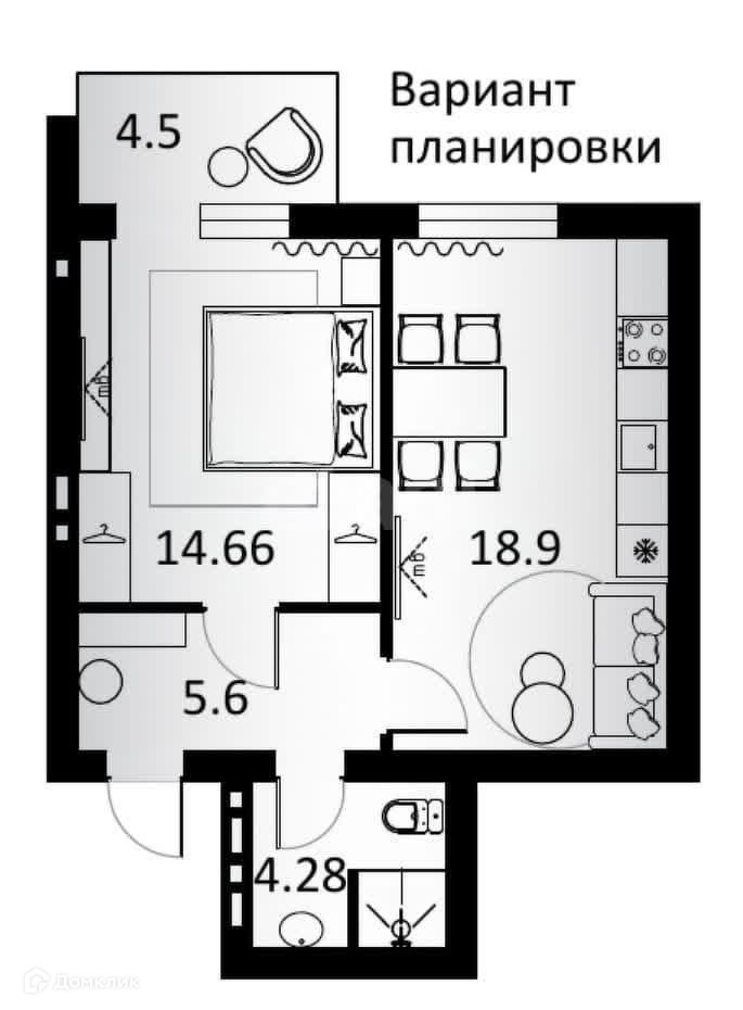 Общая площадь 43.44 м2