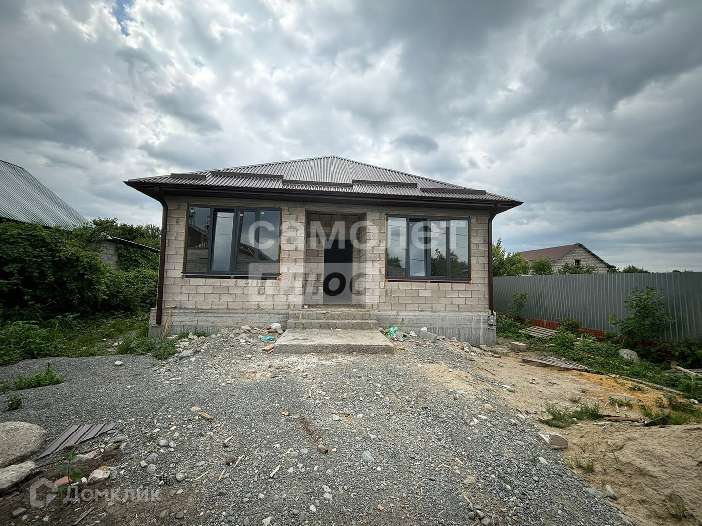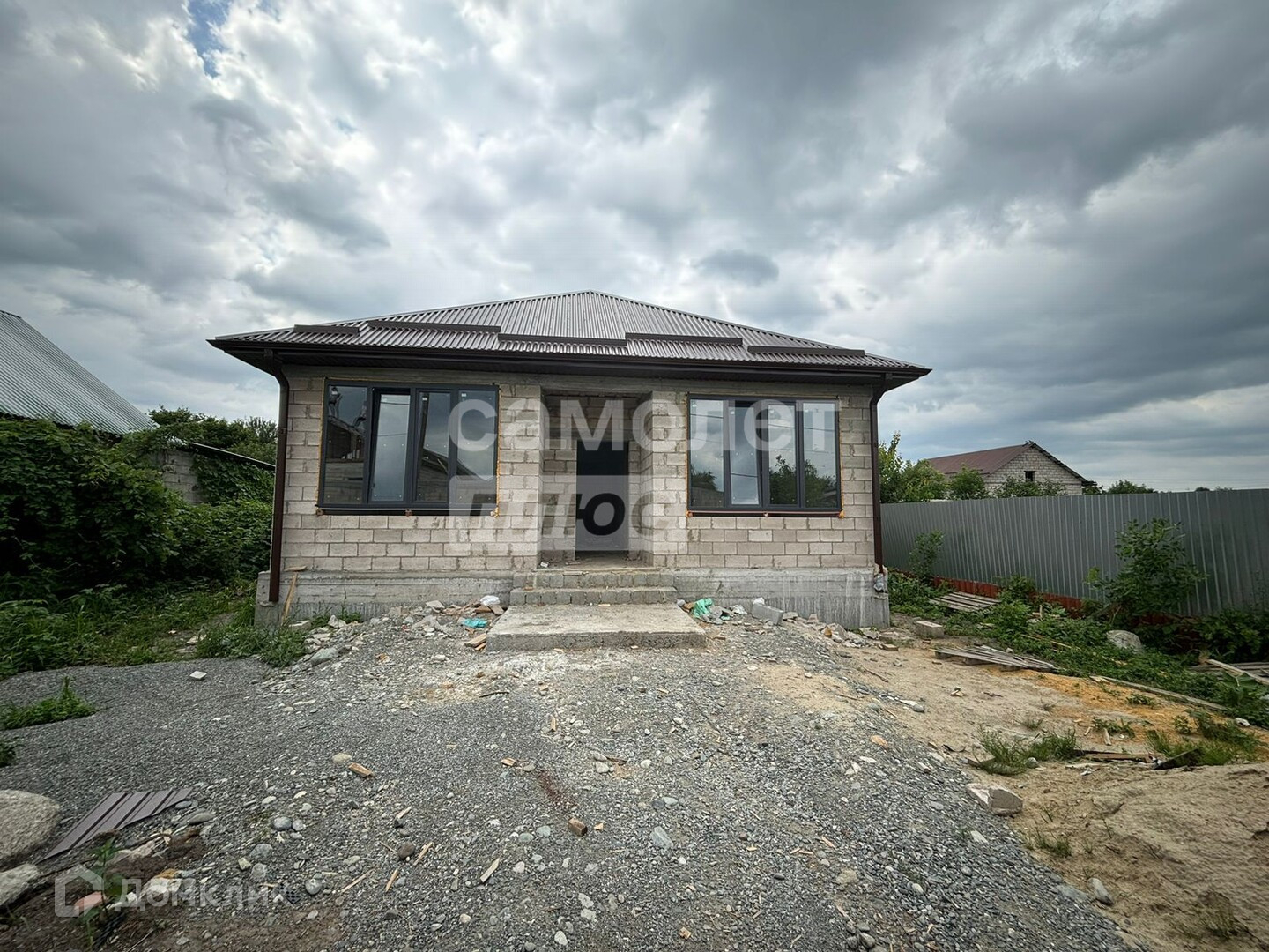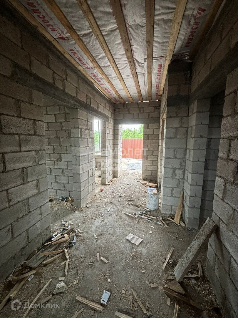 Дом площадью 105 кв. м. построен на капитальном фундаменте, из пеплоблока.