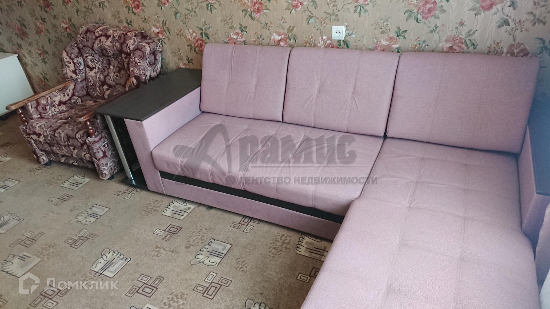 Из мебели - диван и два кресла. Спальных мест - 3 шт.