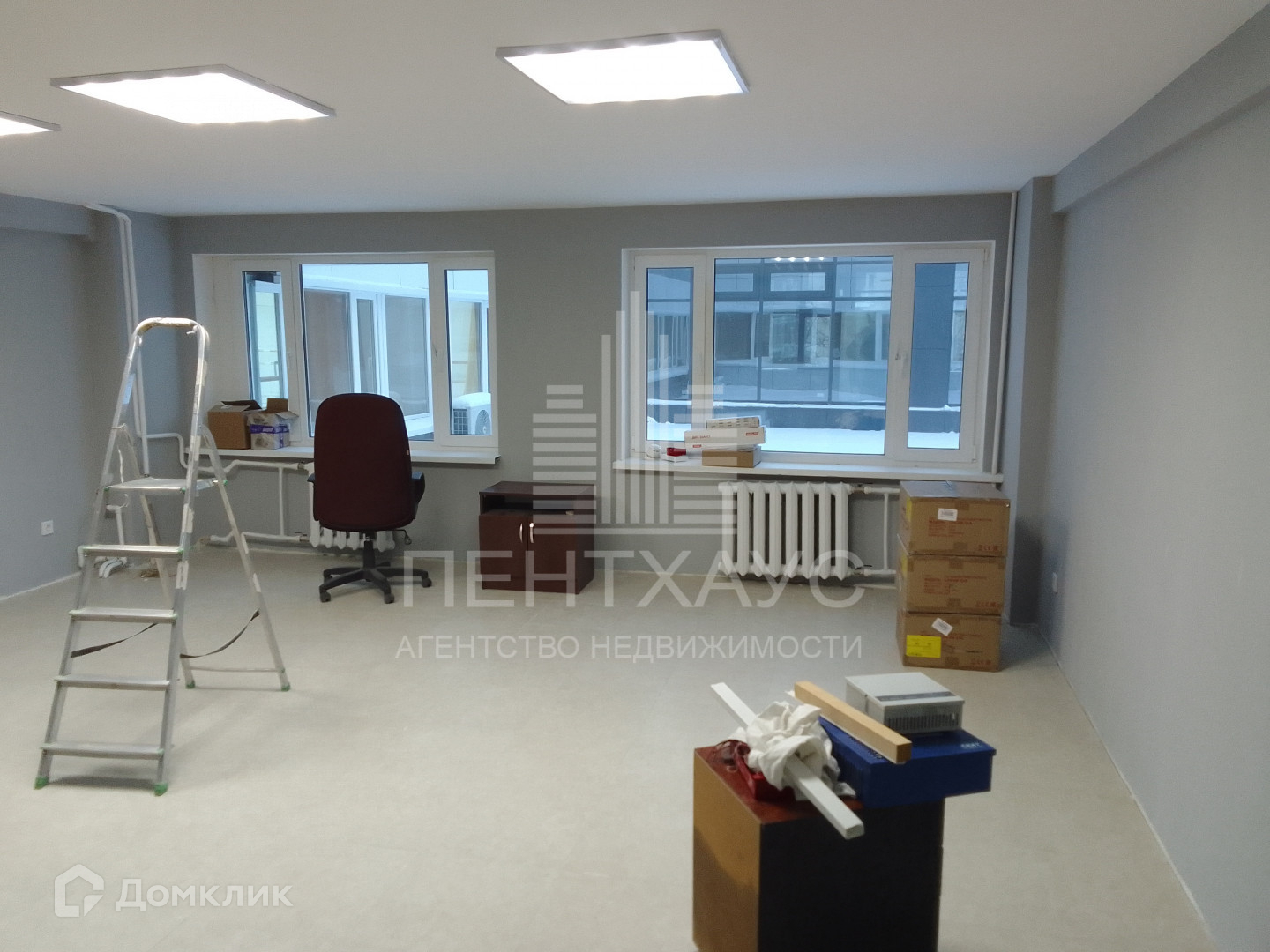 Кабинет с окнами, отделка офисная.