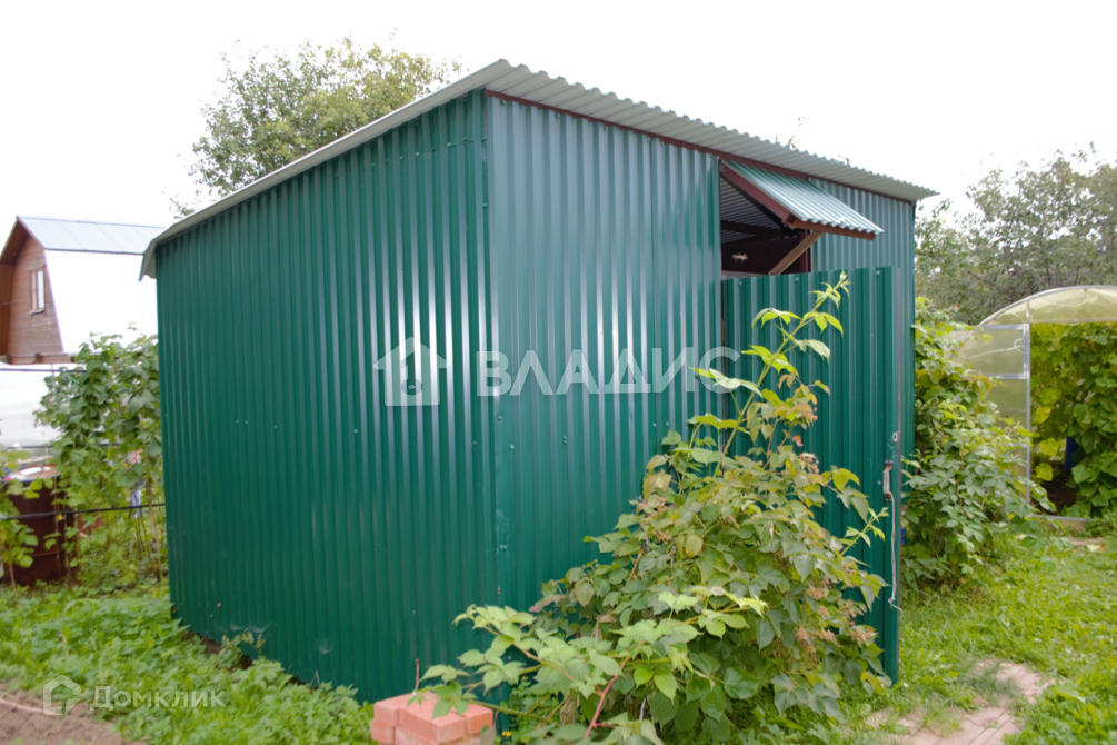 Продаю земельный участок с домиком в черте города. На участке 2-этажный деревянный дом: 1этаж - комната и кухня, на 2м этаже комната и летняя веранда. Окна ПВХ .Коммуникации: Газ балонный, электричество круглогодичное и водопровод в летний период. Плодово-ягодные насаждения,  2 теплицы, металлическая бытовка с летним душем и местом под инвентарь. Хороший подъезд к домику, имеется своё парковочное место с въездом на участок..