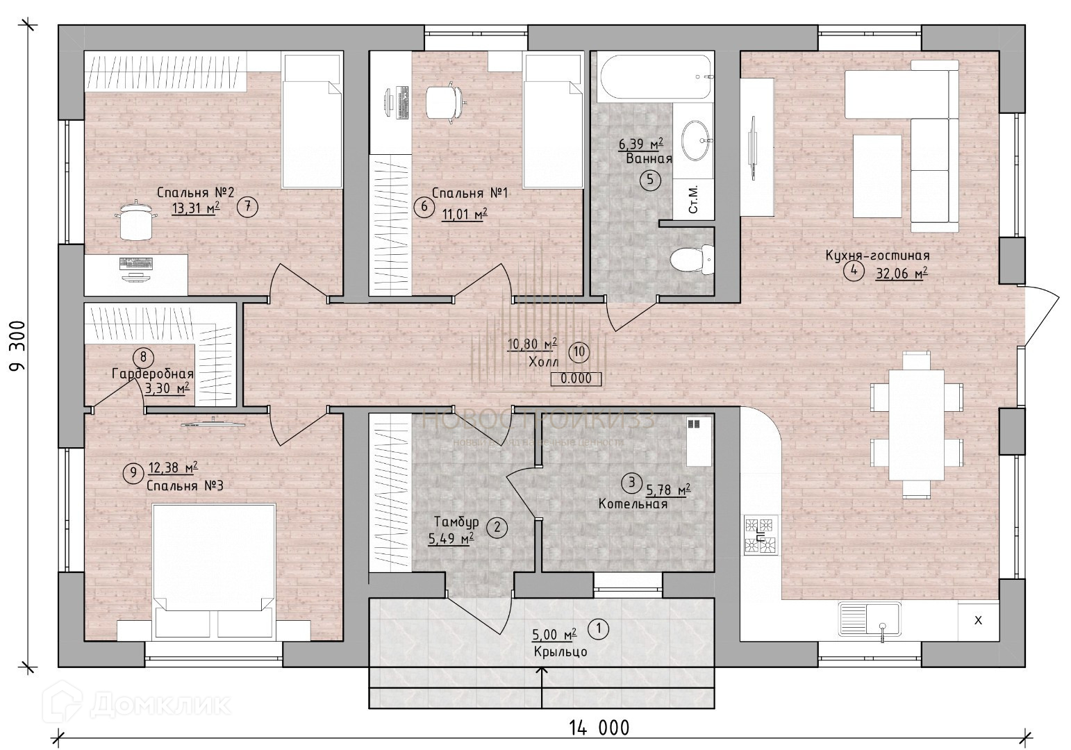 Общая площадь 105.5 м2