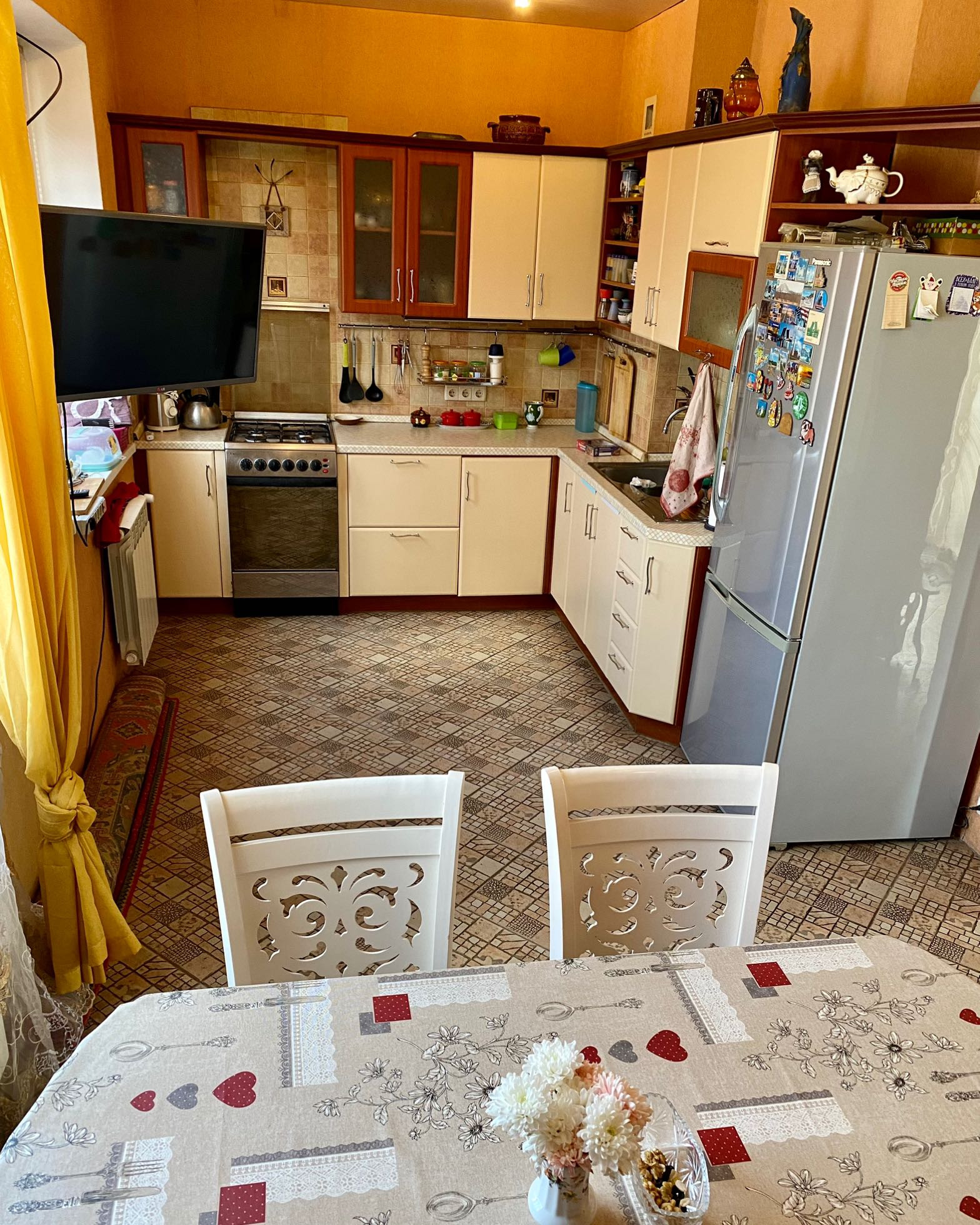 Разделен на две обособленные половины, таких предложений очень мало. Цена за две части, проживает одна семья. По факту два таунхауса по цене одного. Асфальт. Газовое отопление! Центральная канализация! Центральное водоснабжение! Остановка на соседней улице. Школьный автобус. Две школы, три детских сада, спорт. клуб, бассейн, магазины, аптеки, сбер и тд. Стены порядка 50 см с отделкой камнем.