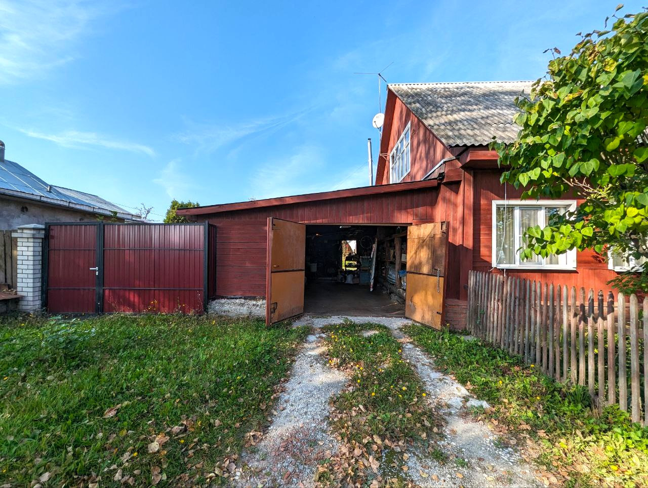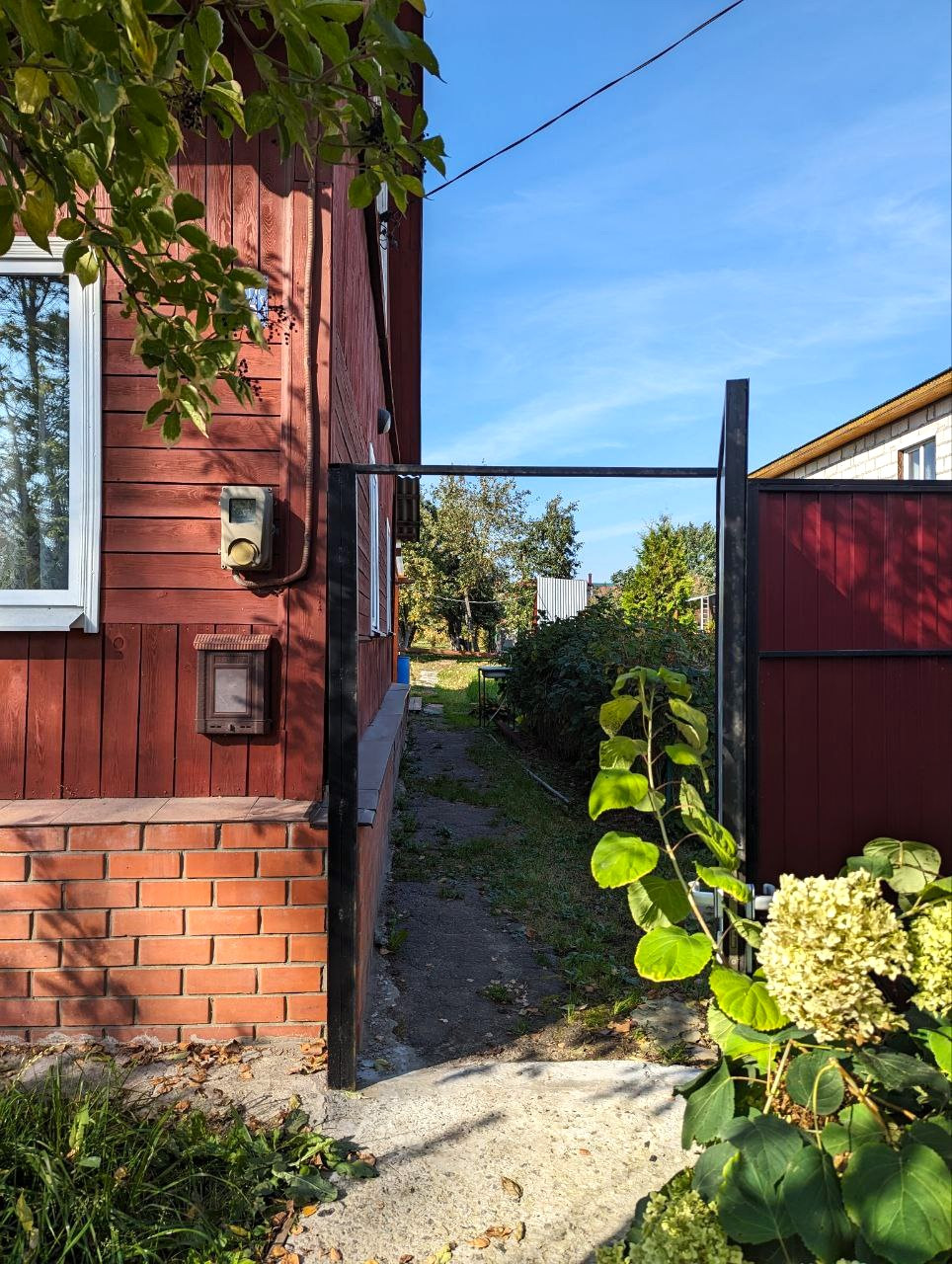 Территория дома огорожена забором, есть калитка и въездные ворота.