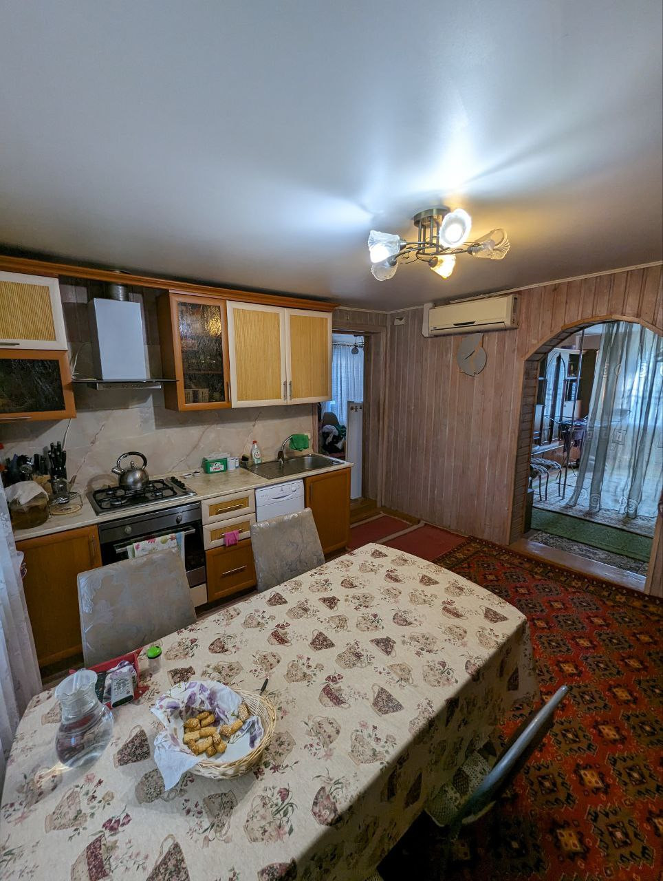 В доме имеется прихожая и большой длинный коридор, совмещенный санузел с установленным бойлером, просторная кухня, 3 больших отдельных комнаты. Комнаты оборудованы кондиционерами.