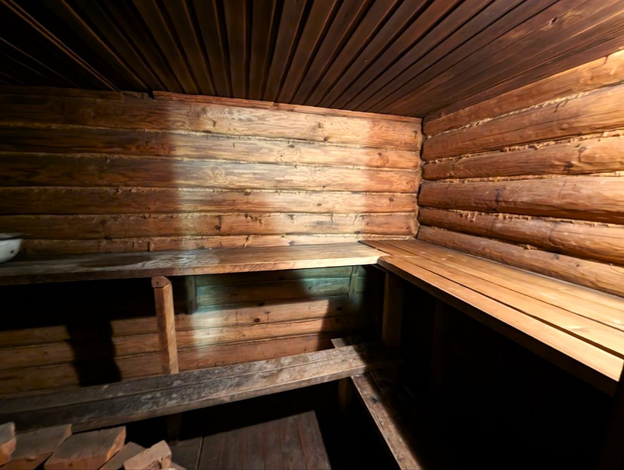 На территории дома расположена баня, санузел, большой гараж с погребом.