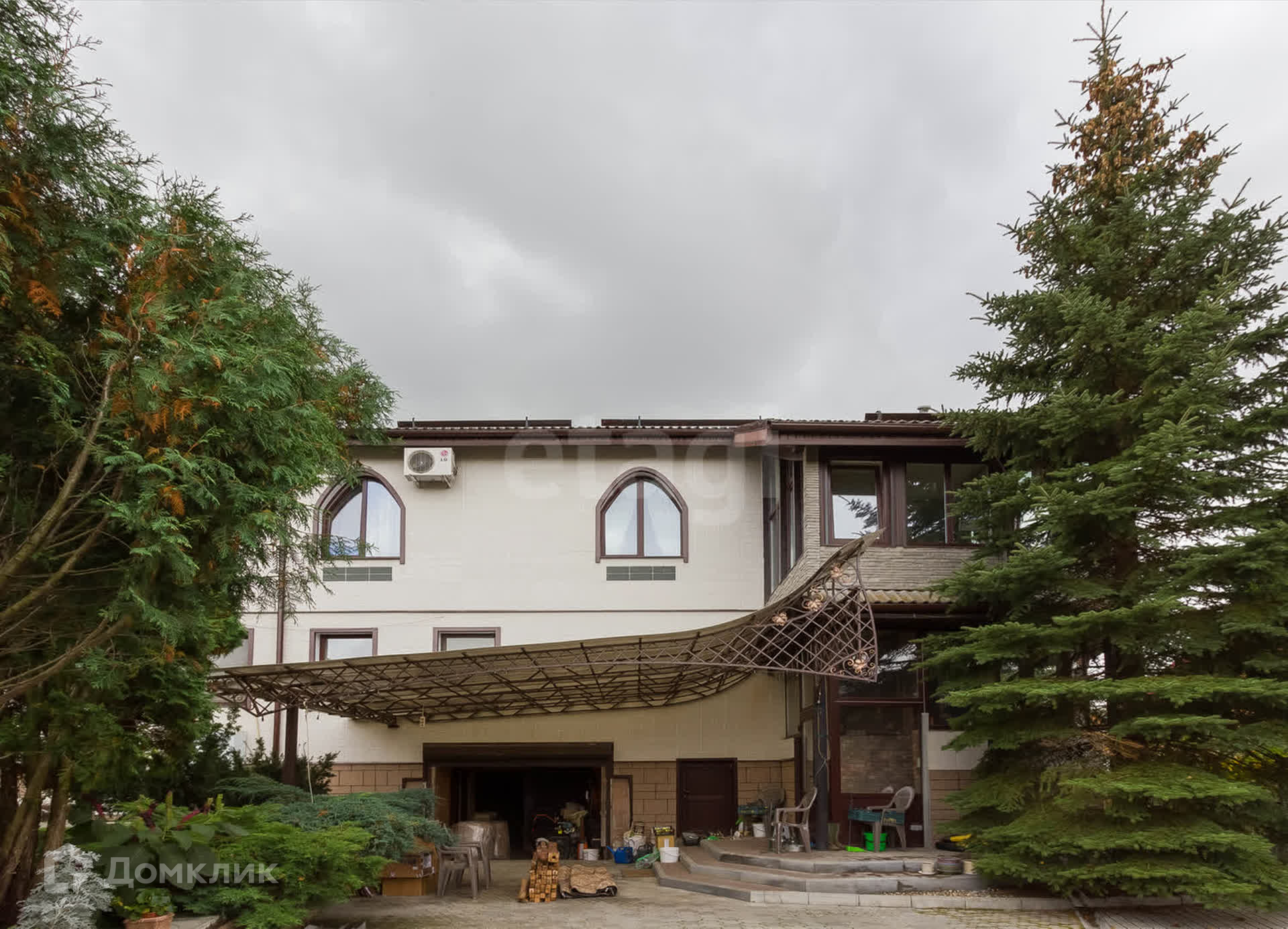 Имеется гараж, зона отдыха с бассейном. В саду выполнен ландшафтный дизайн.