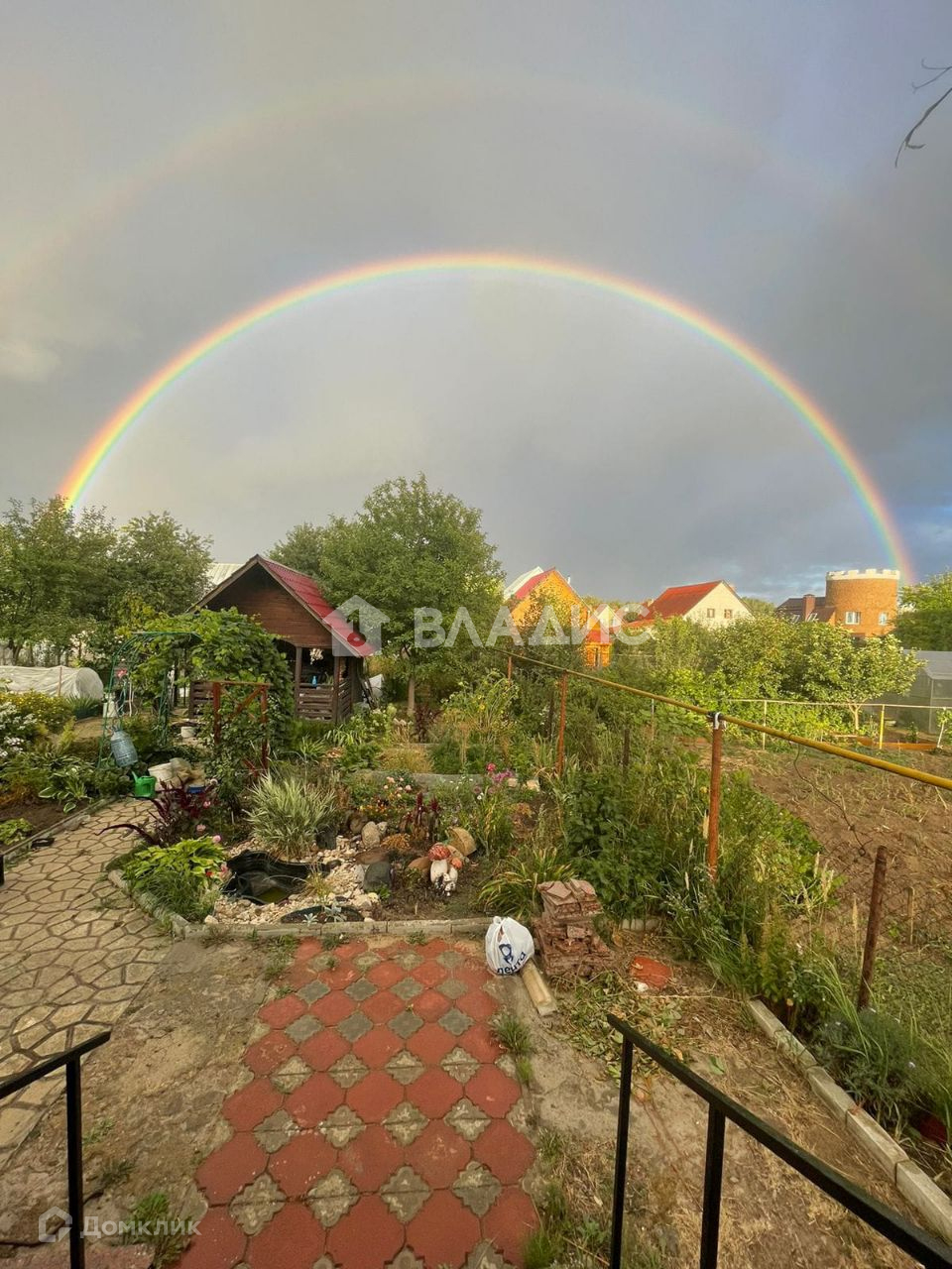 Огороженный плодородный обработанный земельный участок с теплицей , множественными насаждениями, деревянной беседкой и мангальной зоной.