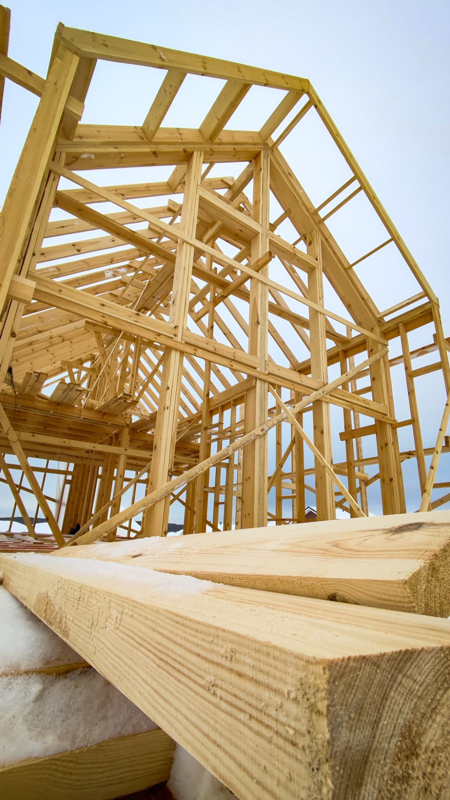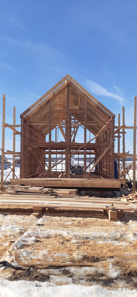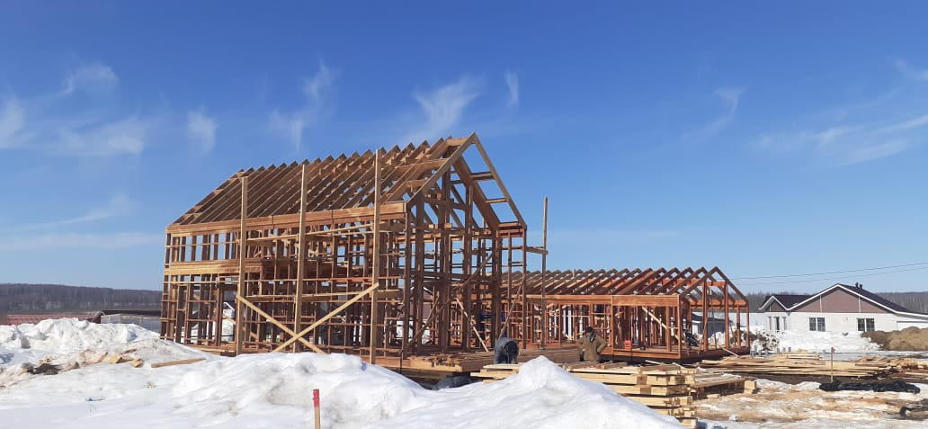 - силовой каркас дома 200 мм по проекту; стропильная система 2-х скатной крыши из доски камерной сушки, строганной;