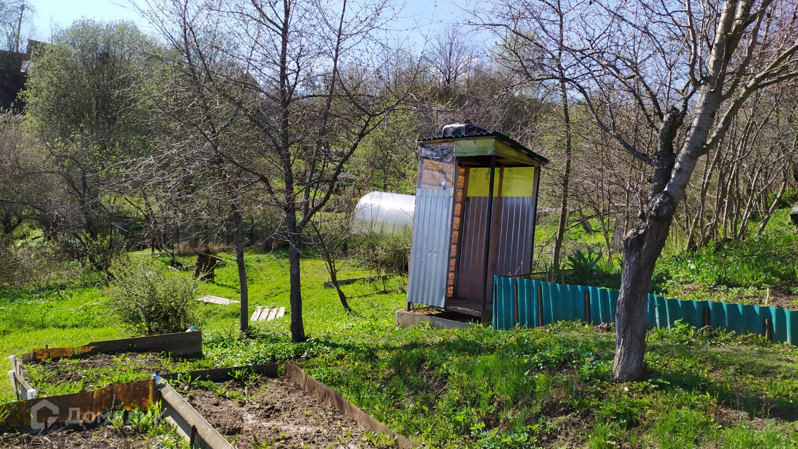На участке 6-ти метровая новая теплица, сарай для садового инвентаря,  летний душ, туалет.