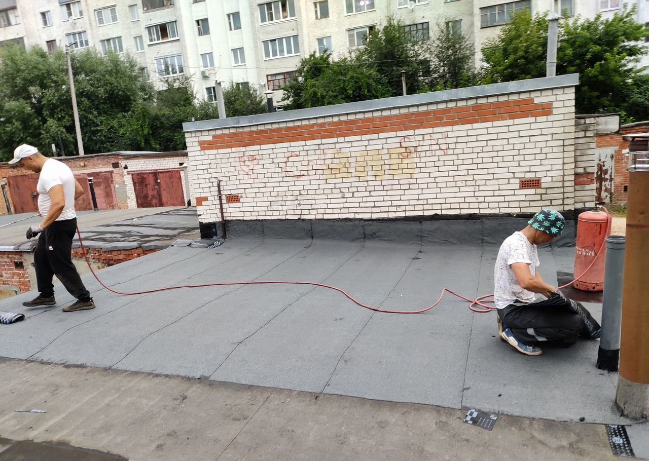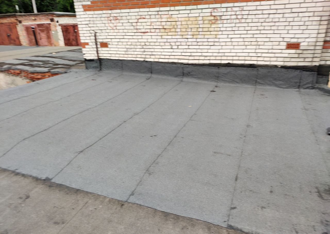 Летом 2025 года на кровле гаража дополнительно уложено два слоя рубероида. В начале и конце кровли установлены металлические сливы.