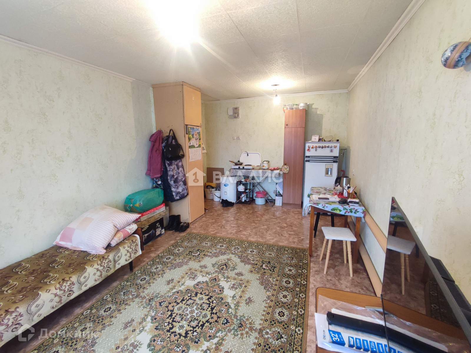 4 этаж 5 этажного кирпичного дома. Комната очень тёплая, светлая, уютная. Места общего пользования содержатся в чистоте. Спокойные соседи. Рядом остановка автобуса №5. Поликлиника, школа, садик, супермаркеты, все в шаговой доступности.
