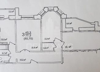 Продаю трехкомнатную квартиру, 77.3 м2, улица Нижняя Дуброва, 11А