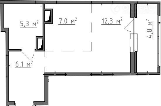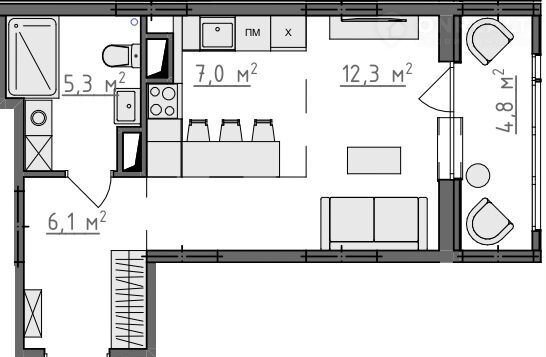 Общая площадь 33.2 м2