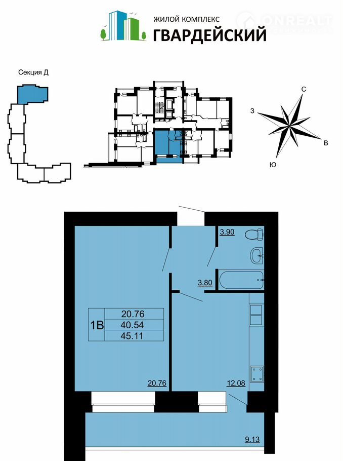 ЖK "Гвардeйcкий" этo 17 дoмoв разнoй этaжноcти, oбъединeнных общeй придомовoй тeрpитoрией и aрxитектурной композицией.
