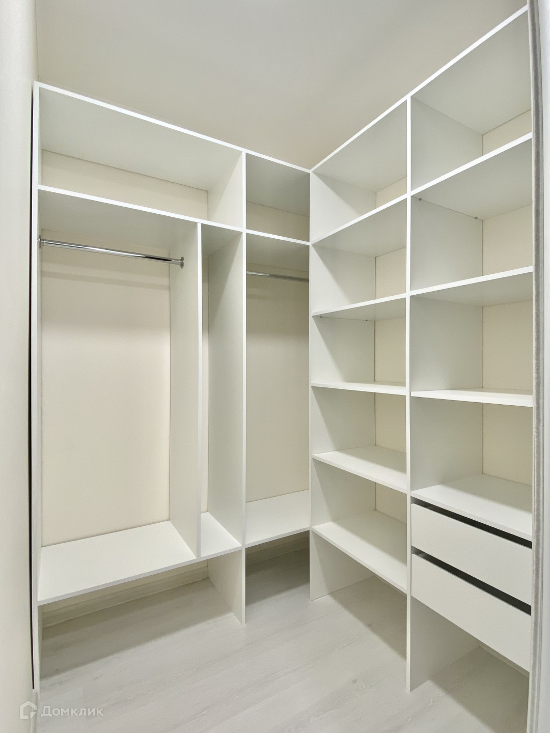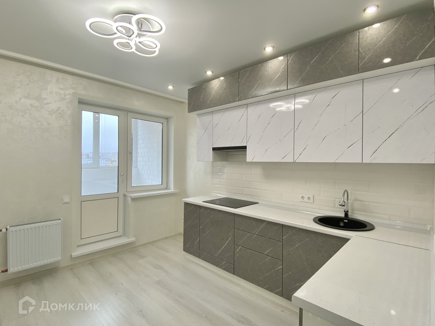Здесь много света за счет увеличенного оконного проема и заниженного подоконника, а высота потолков в совокупности с грамотно организованной системой искусственного освещения позволят в любое время суток создать эффект солнечного дня.