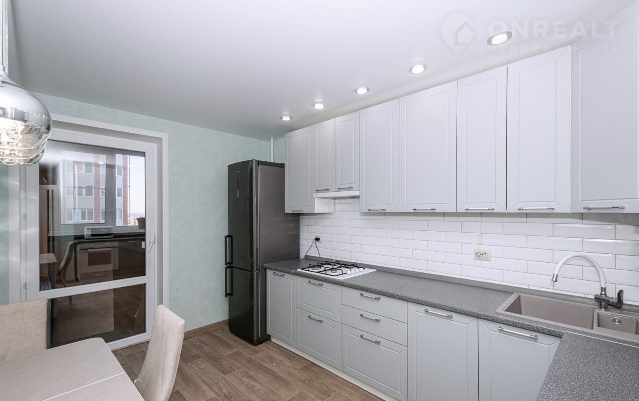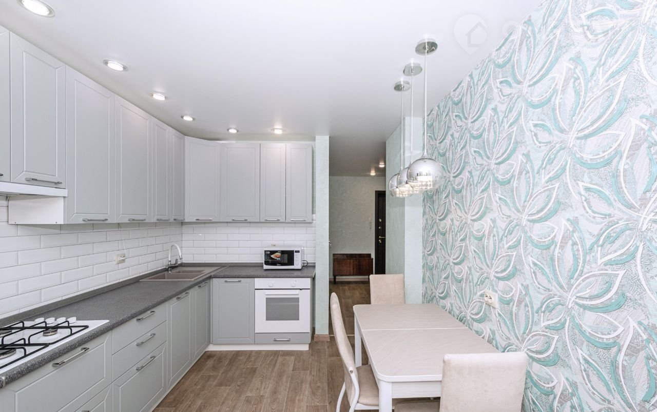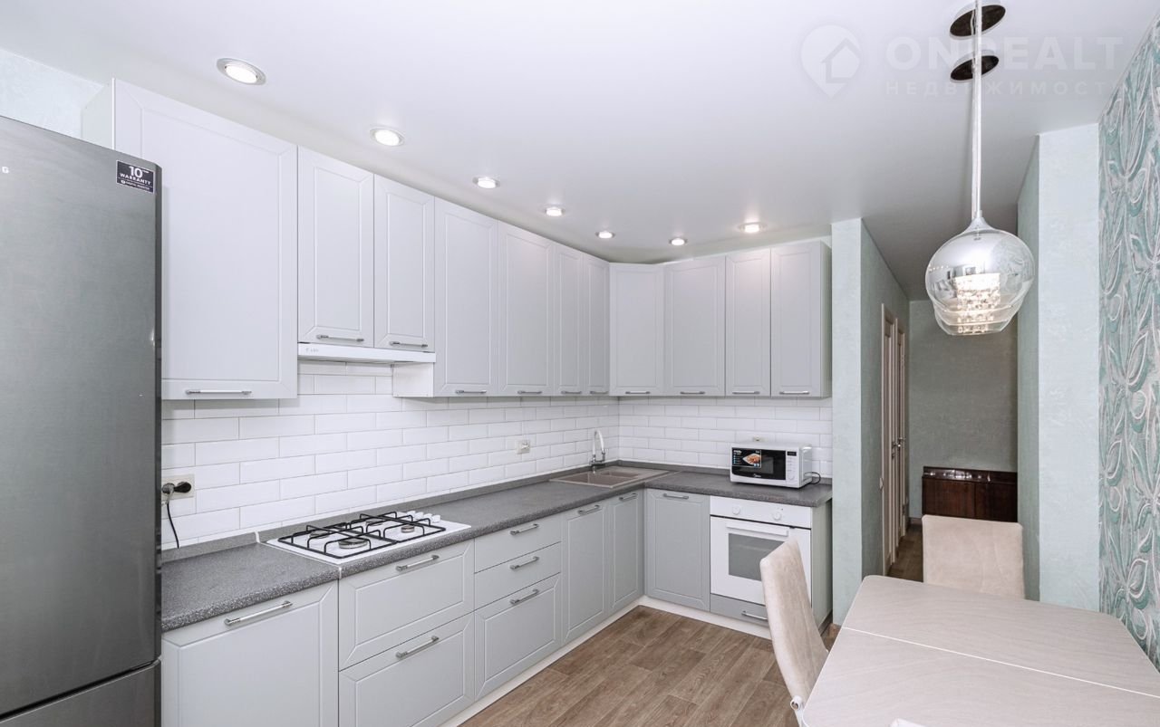 Выполнен качественный современный ЕВРО ремонт. Натяжные потолки, окна ПВХ, сан. узел в кафеле раздельный, лоджия застеклена. Низкие коммунальные платежи, квартира НЕ угловая. Остается современный кухонный гарнитур с высокими верхними шкафами, а также с встроенной газовой плитой.