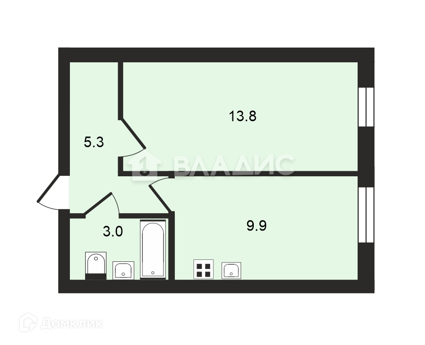 Общая площадь 32.4 м2