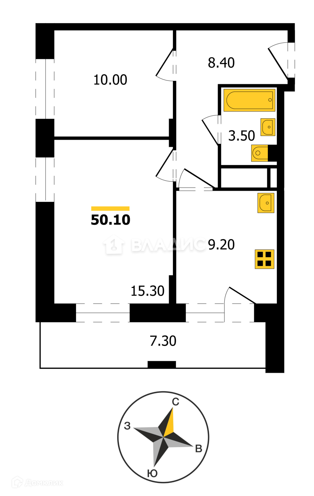 Общая площадь 50.1 м2