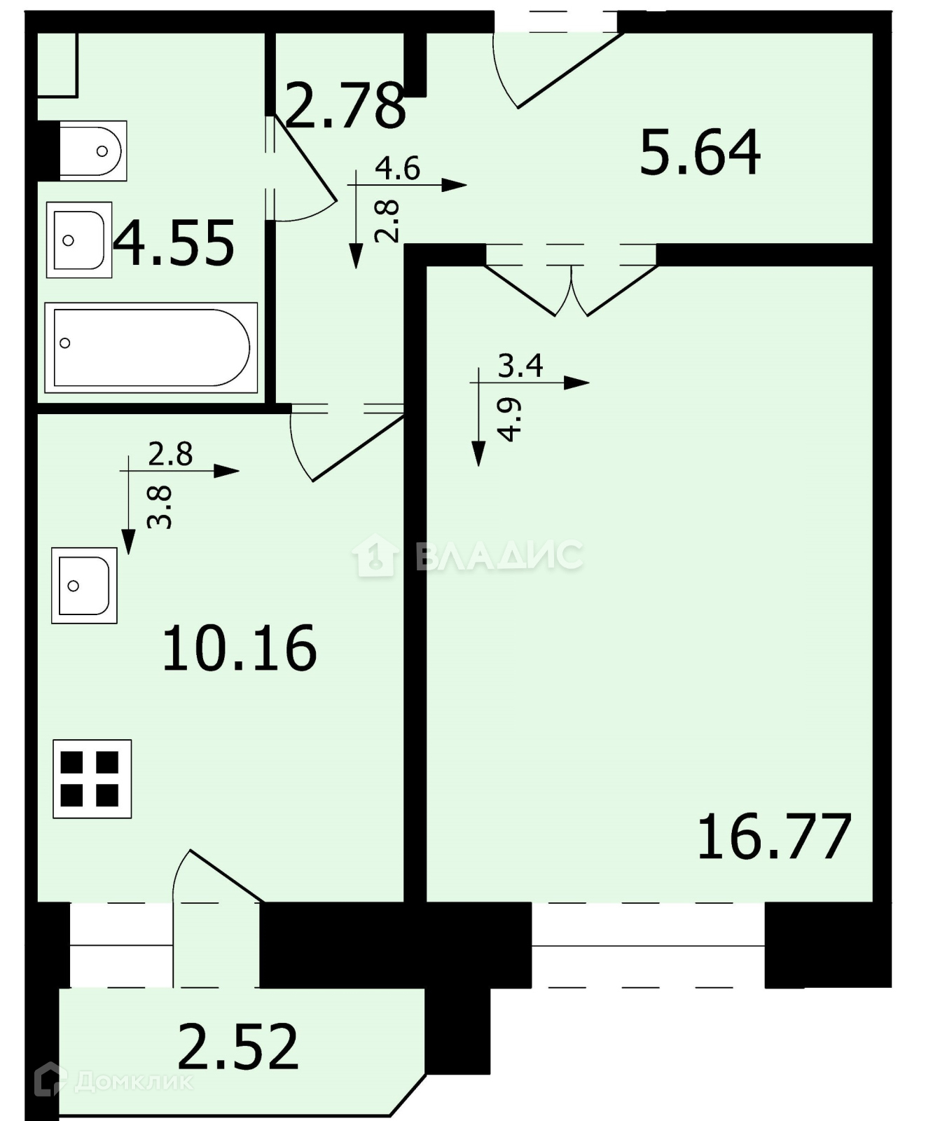 Жилая площадь 16 м2