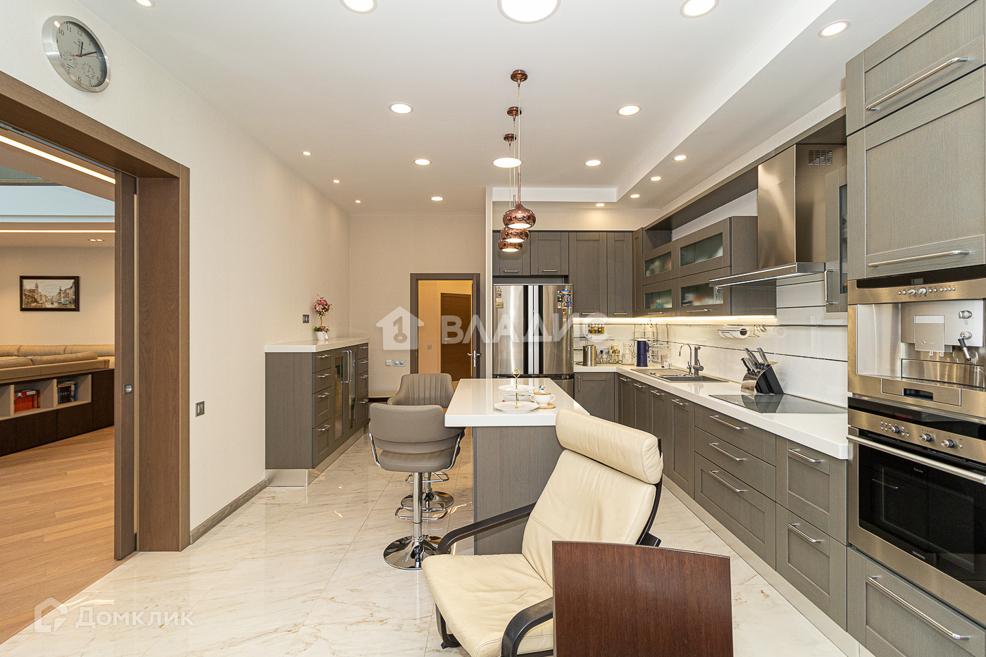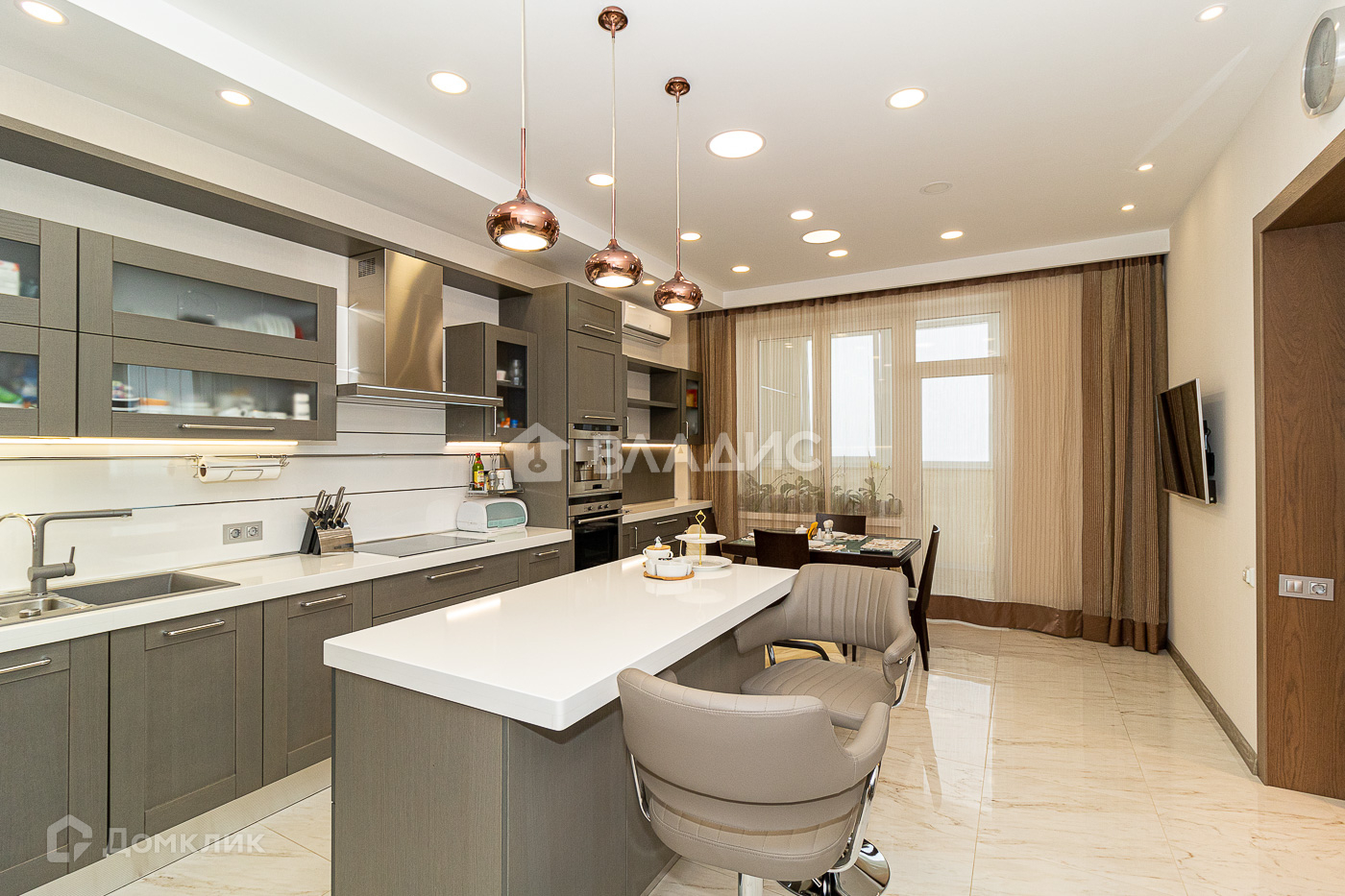 В отделке ИСПОЛЬЗОВАНЫ ДОРОГИЕ ОТДЕЛОЧНЫЕ МАТЕРИАЛЫ. На кухне установлена техника Siemens, Neff, Falmec, Sharp и т.д.