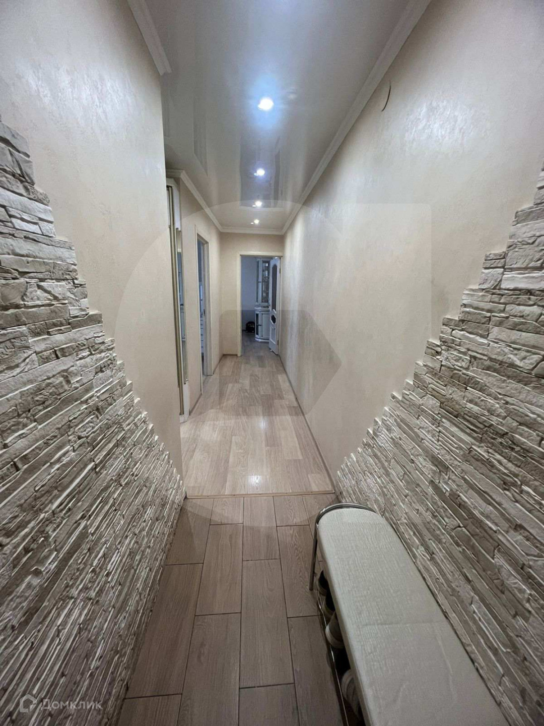 Квартира  отделана современными материалами: на полу ламинат и плитка, натяжные потолки, дорогая декоративная штукатурка на стенах.