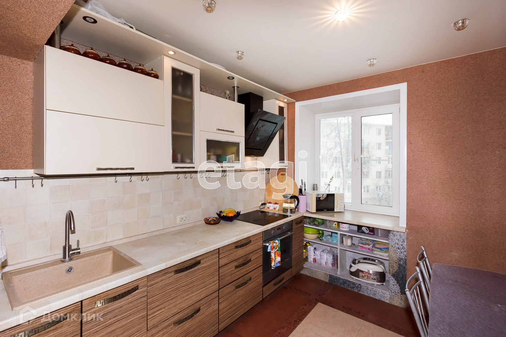 В квартире остаётся кухонный гарнитур, встроенные шкафы, стиральная машина.
