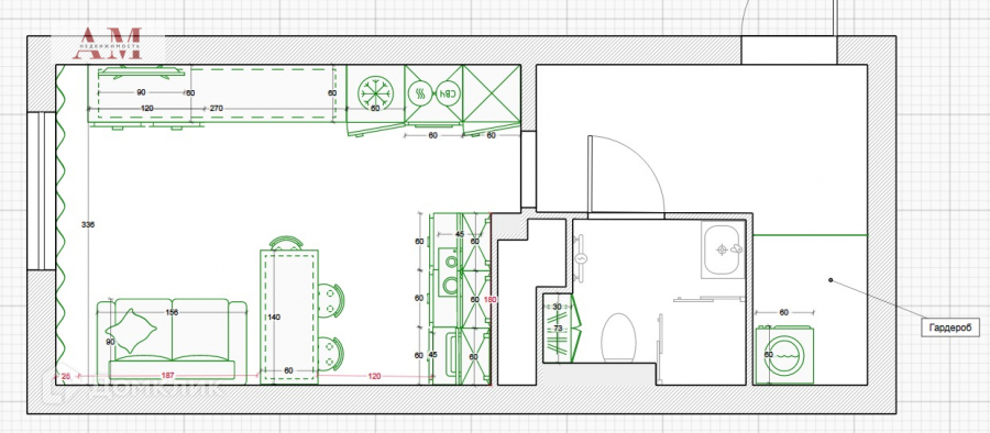 Общая площадь 28 м2
