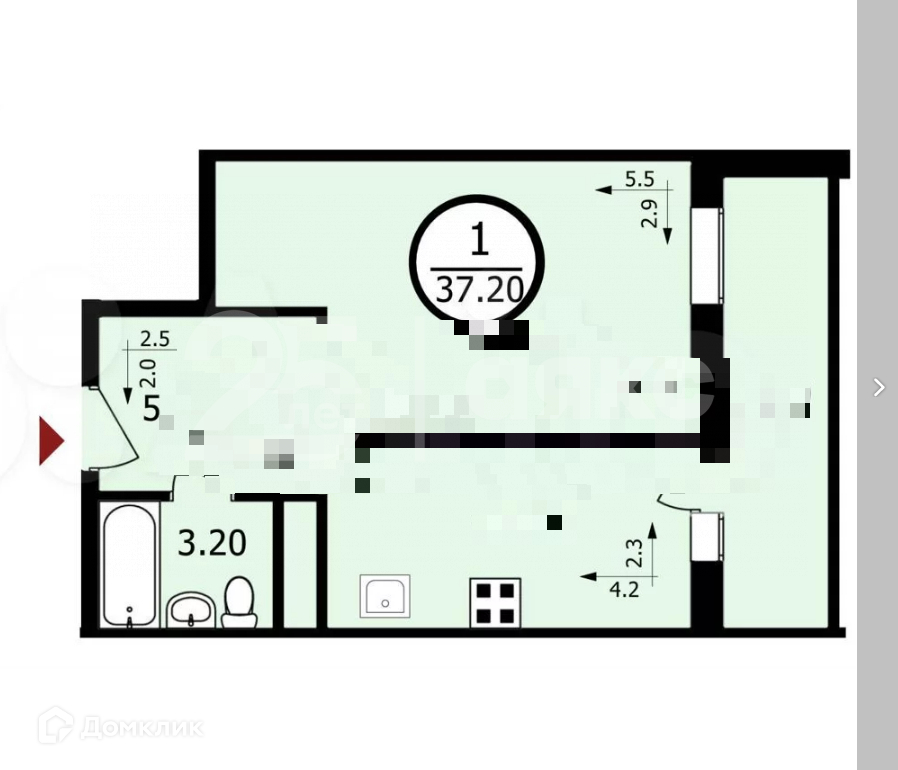 Общая площадь 37.2 м2