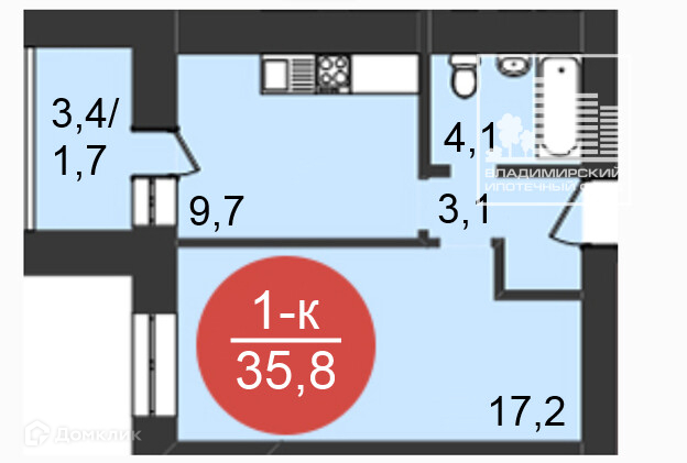 Общая площадь 35.8 м2