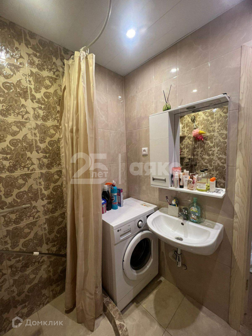 Совмещенный санузел с современной сантехникой, отделанный красивой плиткой.