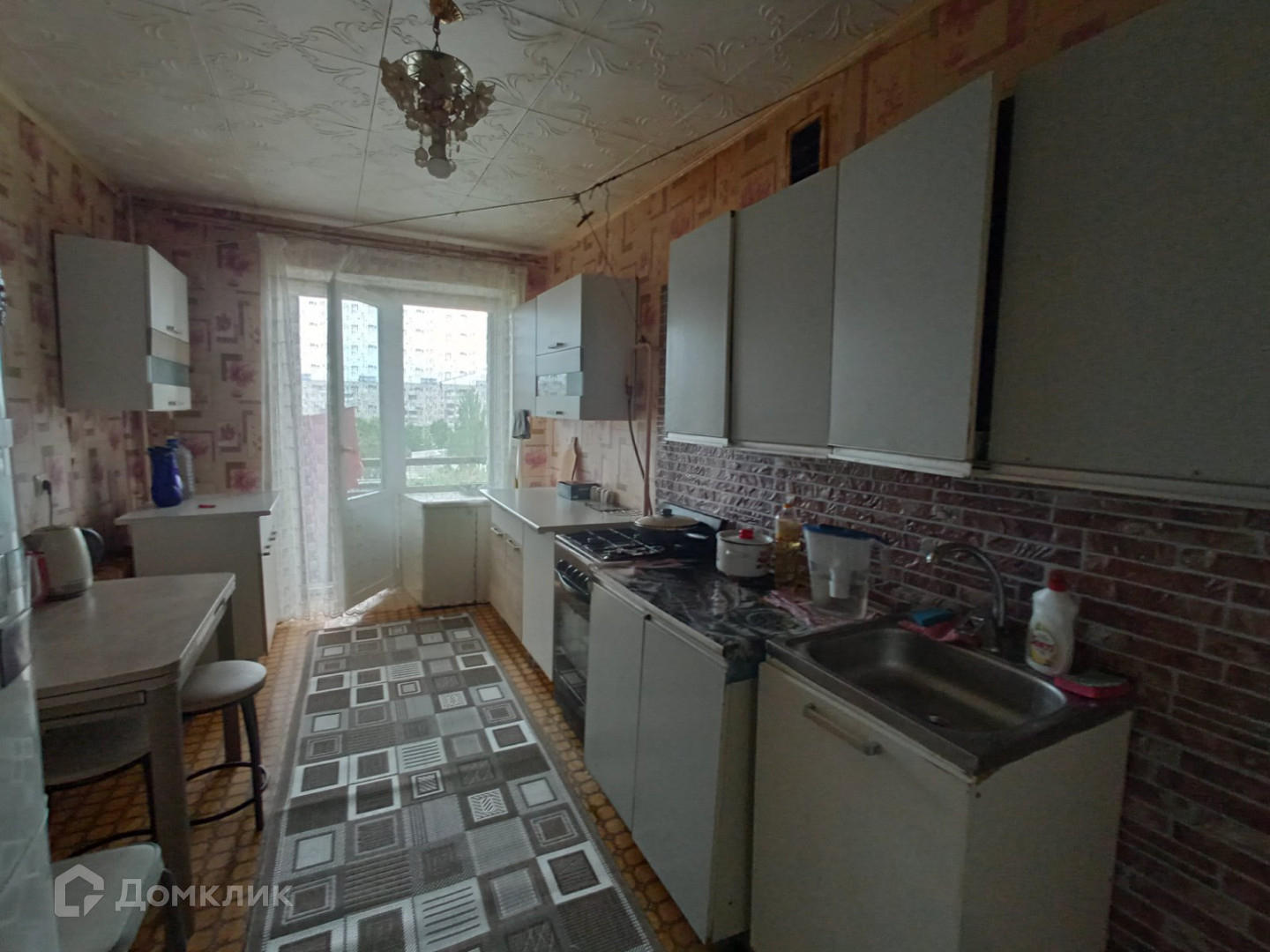 Просторная кухня  тоже с балконом.