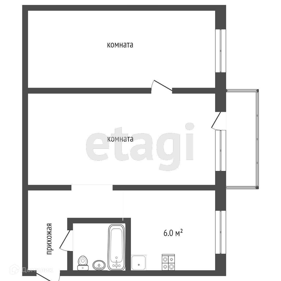 Балкон, лоджия 1 балкон