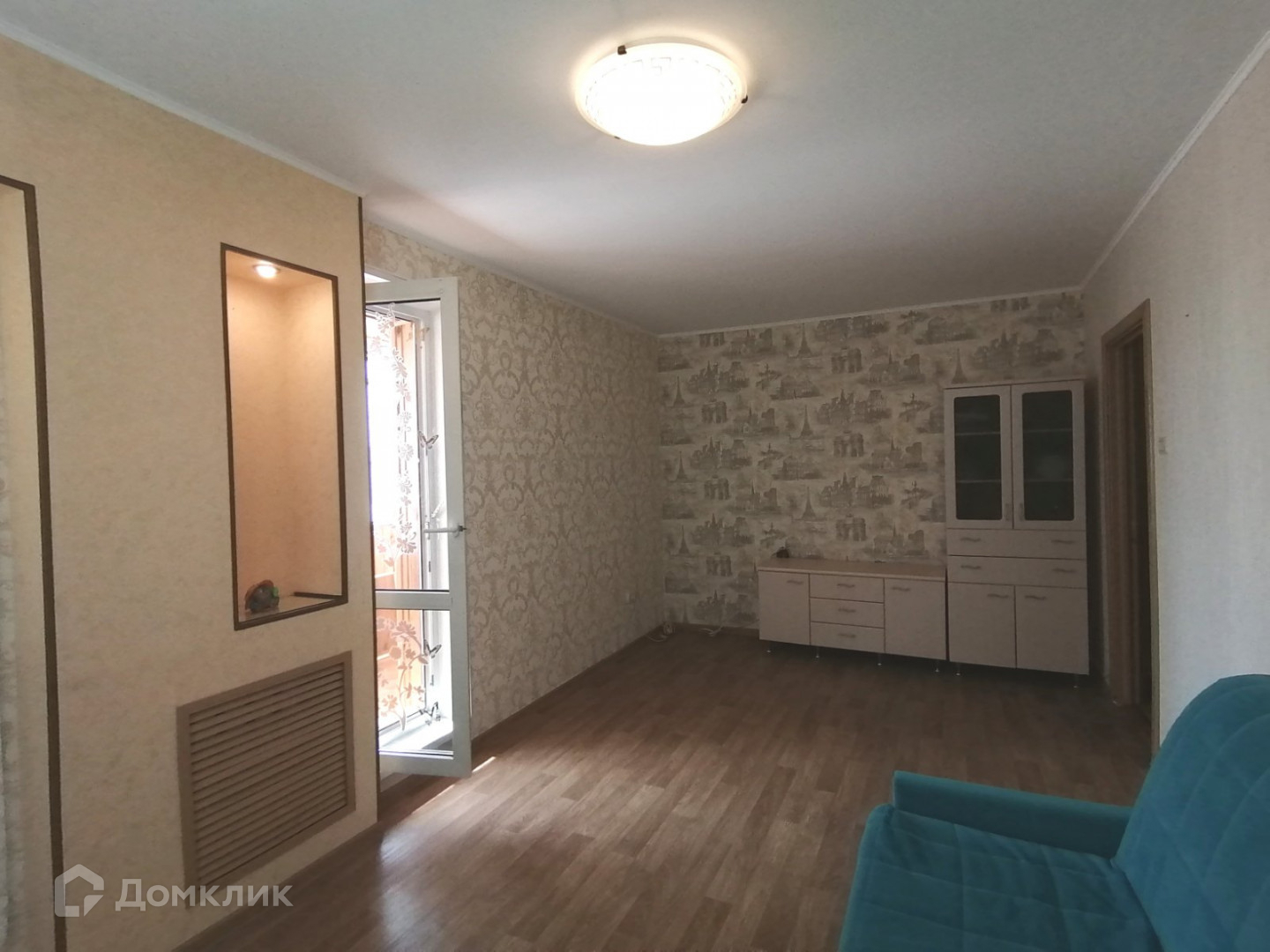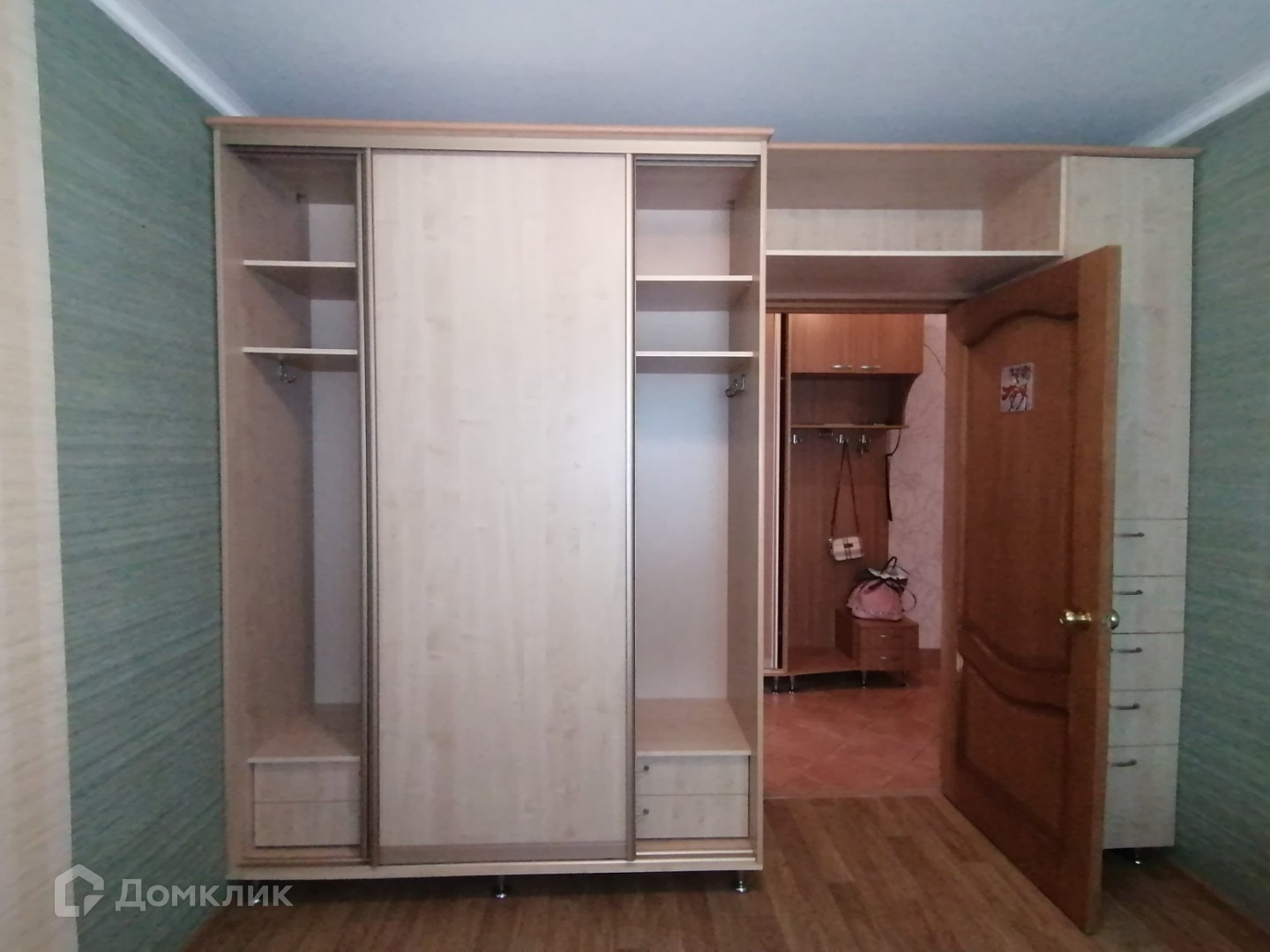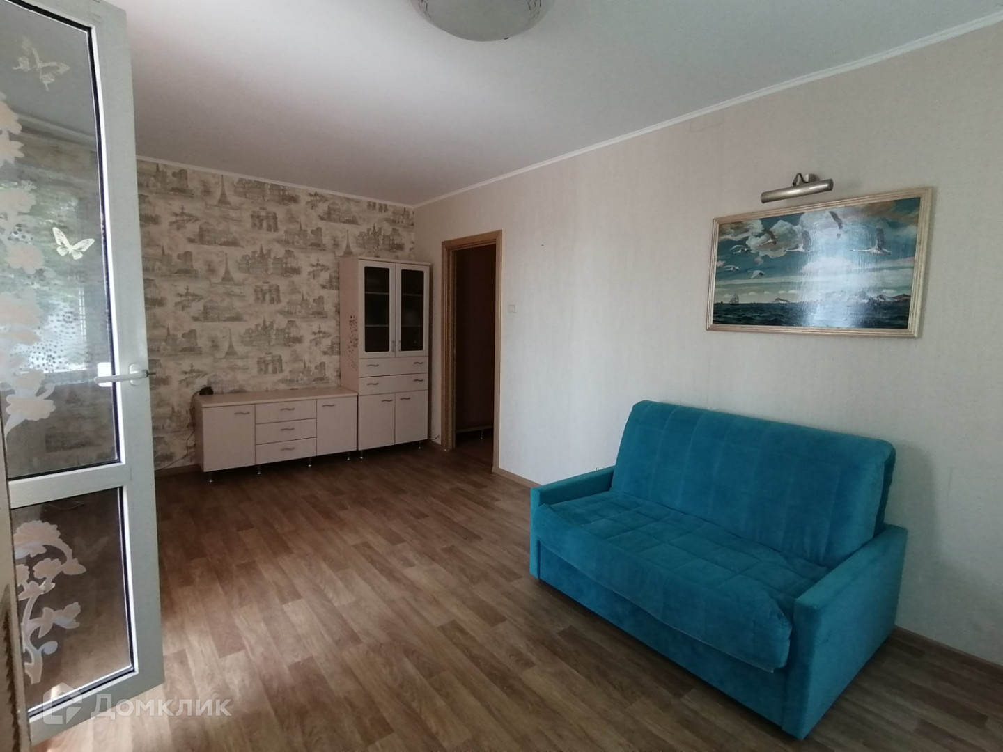 В спальне, зале и коридоре остаётся вся мебель кроме голубого дивана и картин.