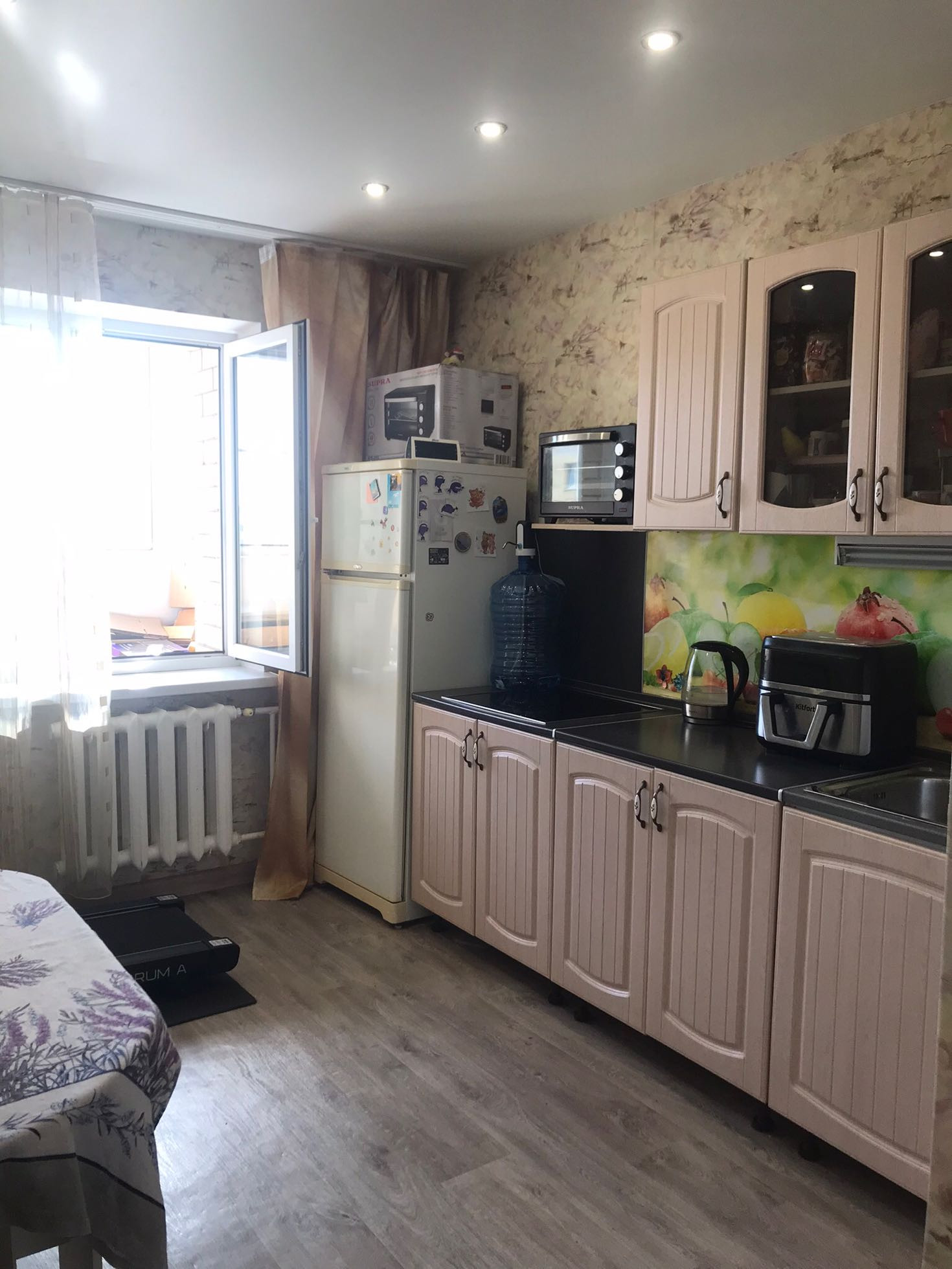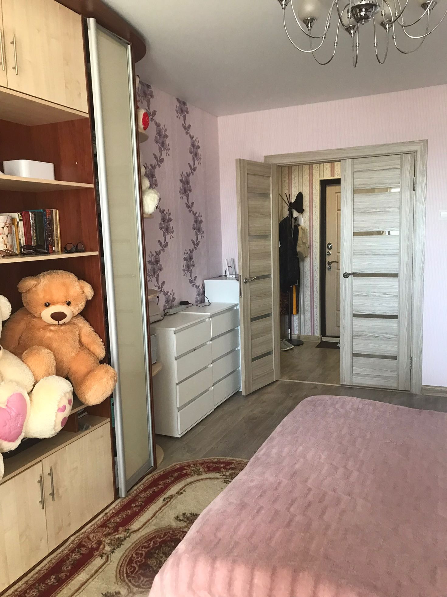 В квартире остается кухонный гарнитур, варочная панель, вместительный шкаф- купе в прихожей.