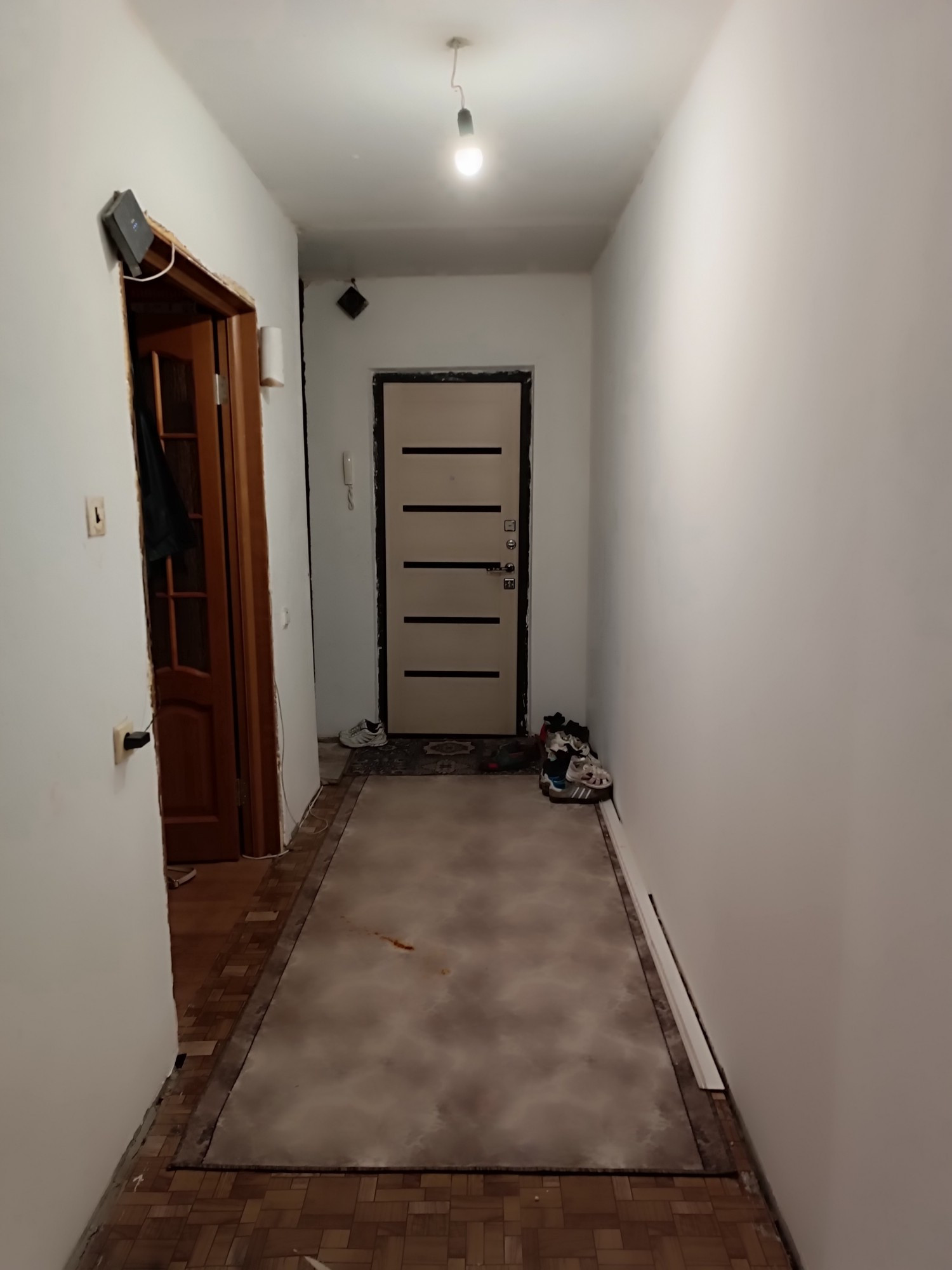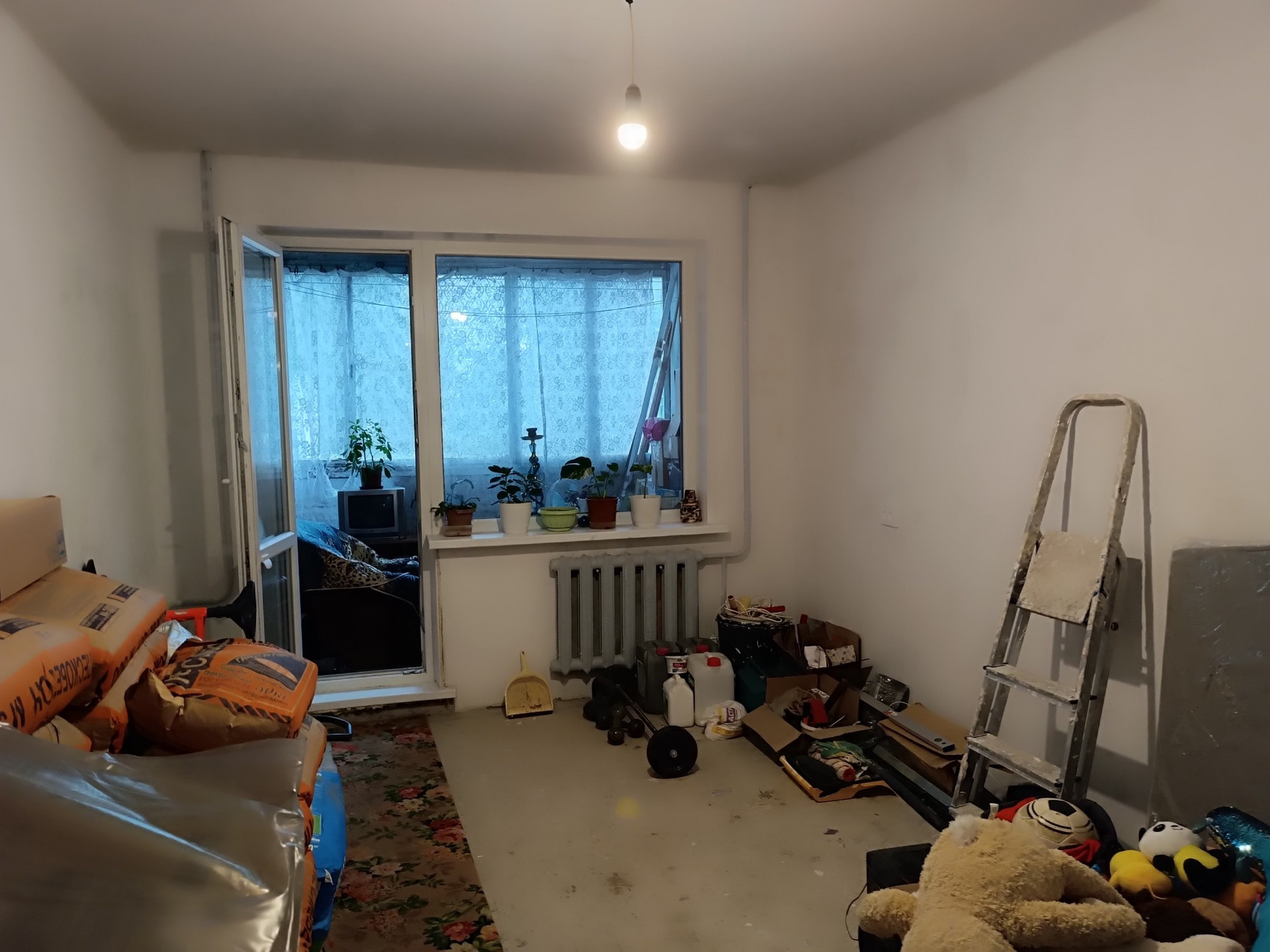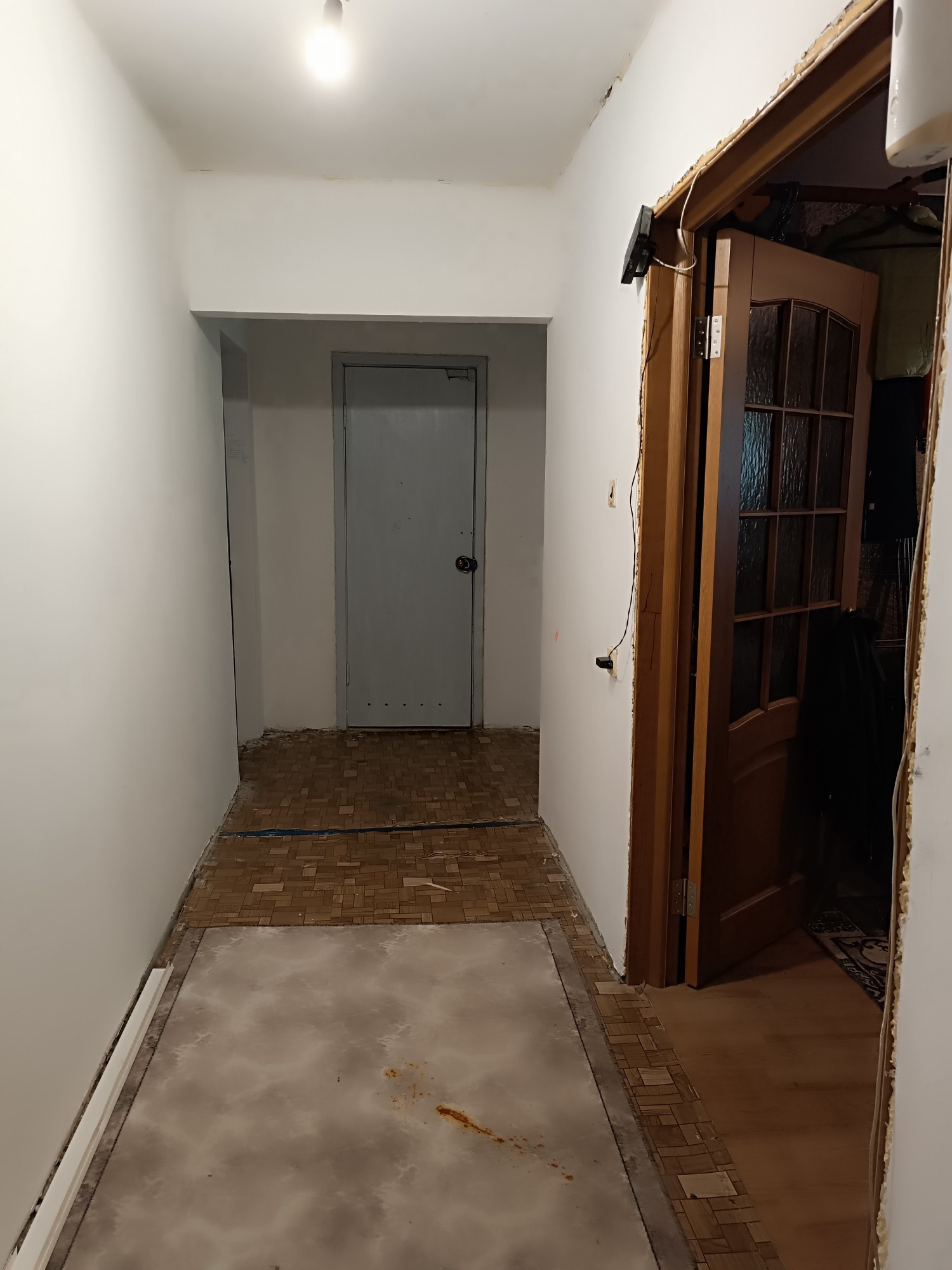 Окна ПВХ, новая входная дверь, в одной комнате сделан ремонт, установлена новая ванна и унитаз, в остальных комнатах и коридоре стены подготовлены под поклейку.