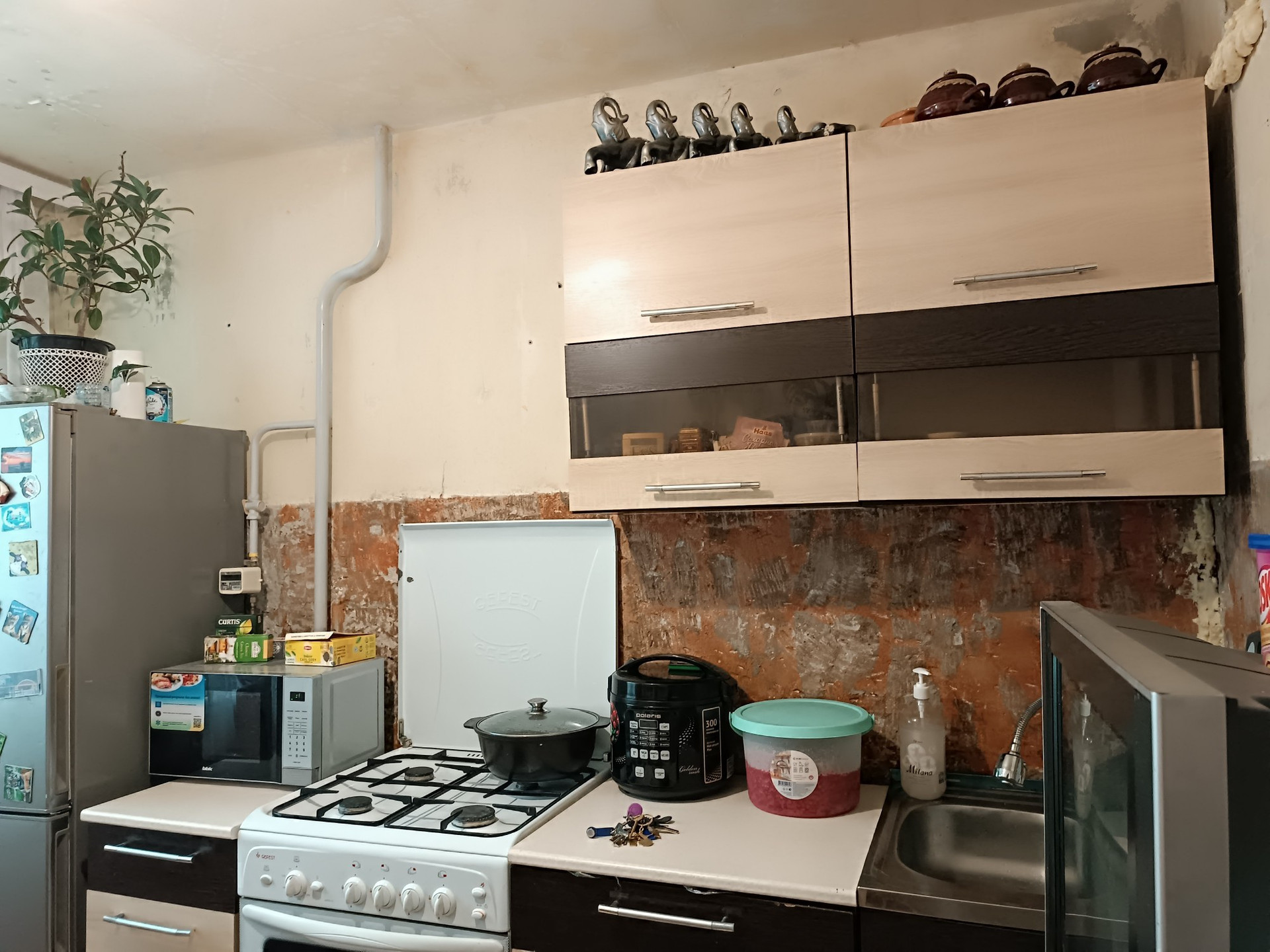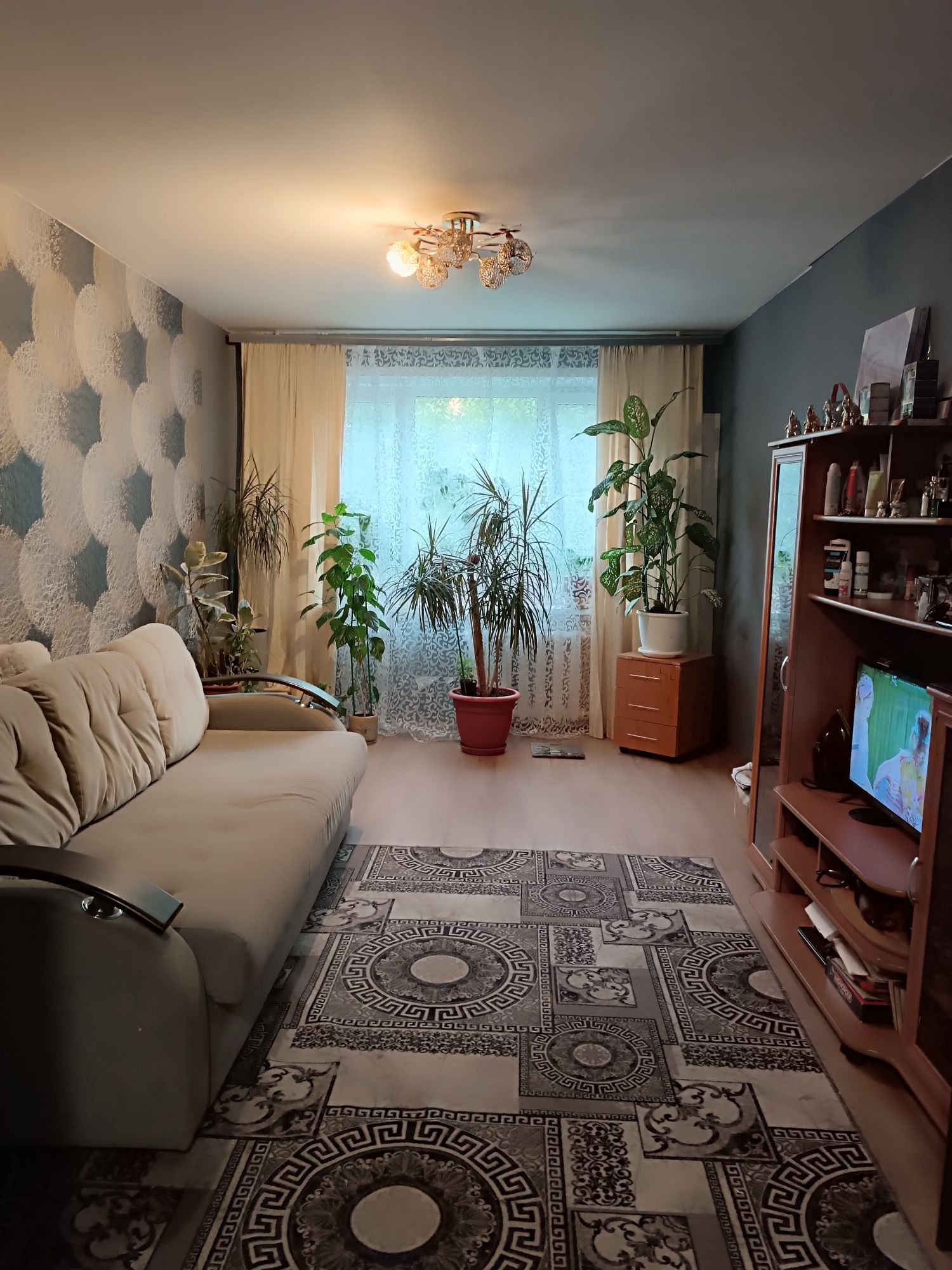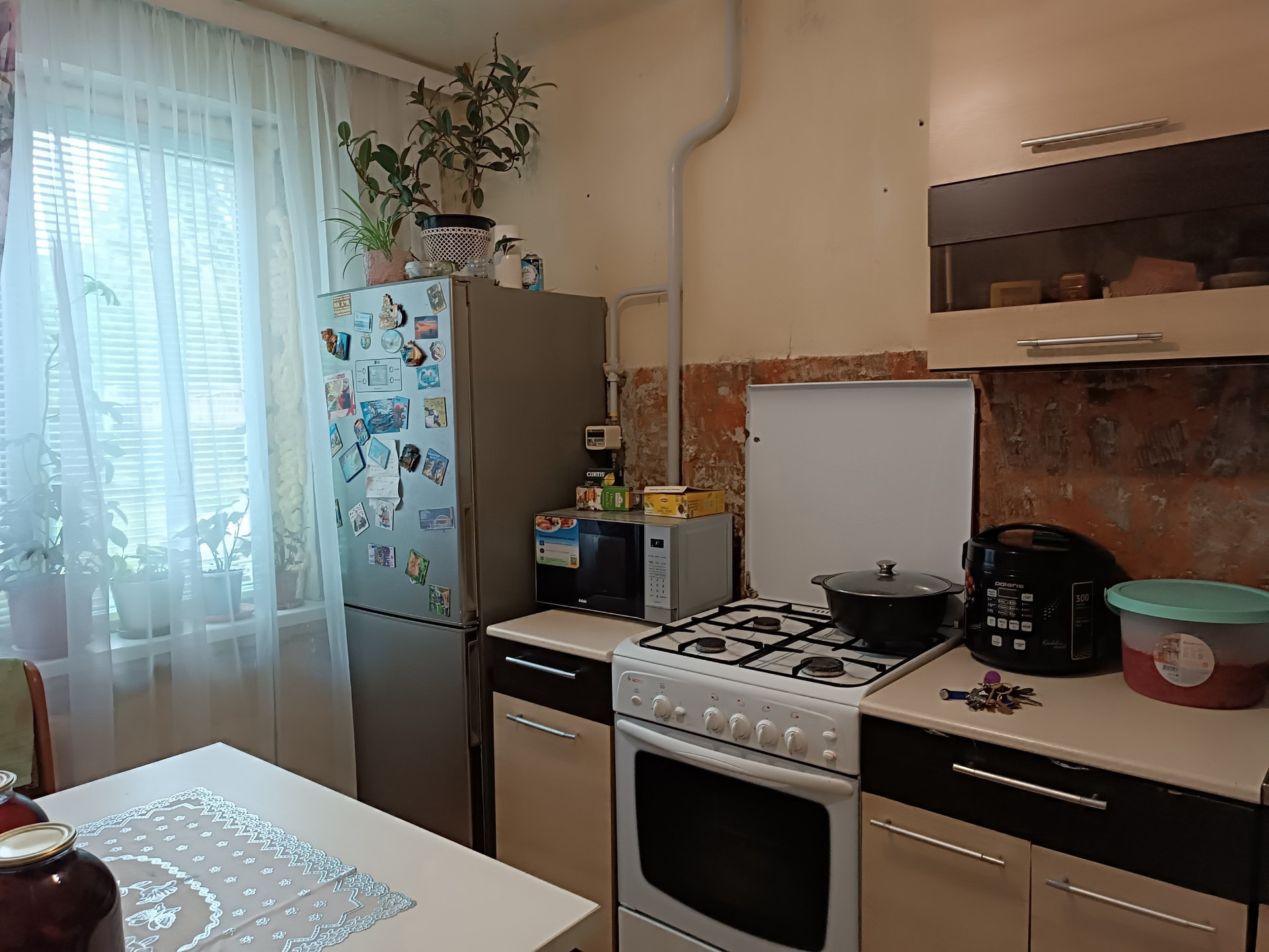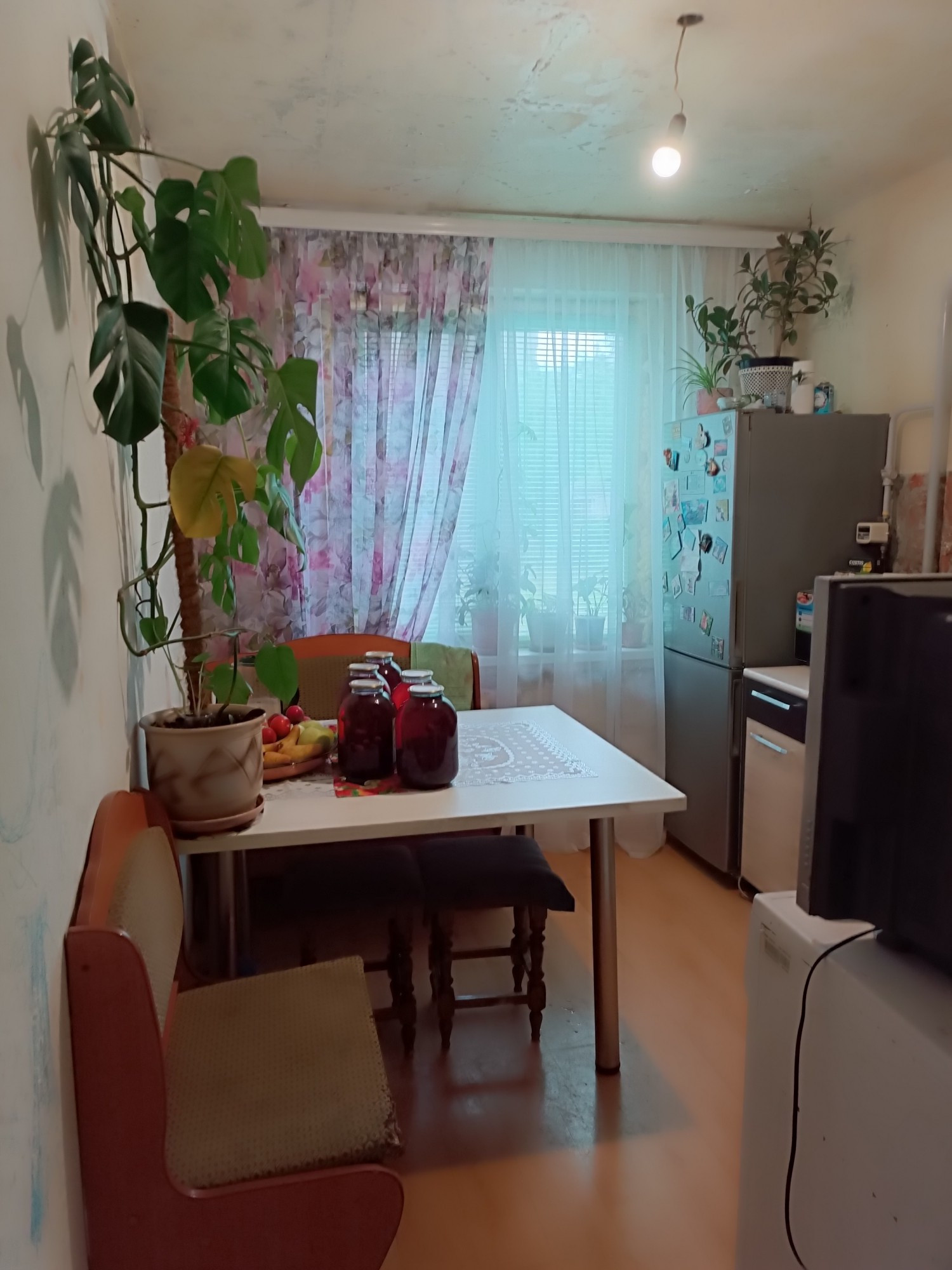 Окна ПВХ, новая входная дверь, в одной комнате сделан ремонт, установлена новая ванна и унитаз, в остальных комнатах и коридоре стены подготовлены под поклейку.