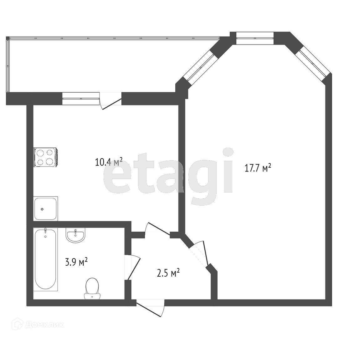 Площадь квартиры 34,3 кв.м. плюс лоджия 5,1 кв.м.