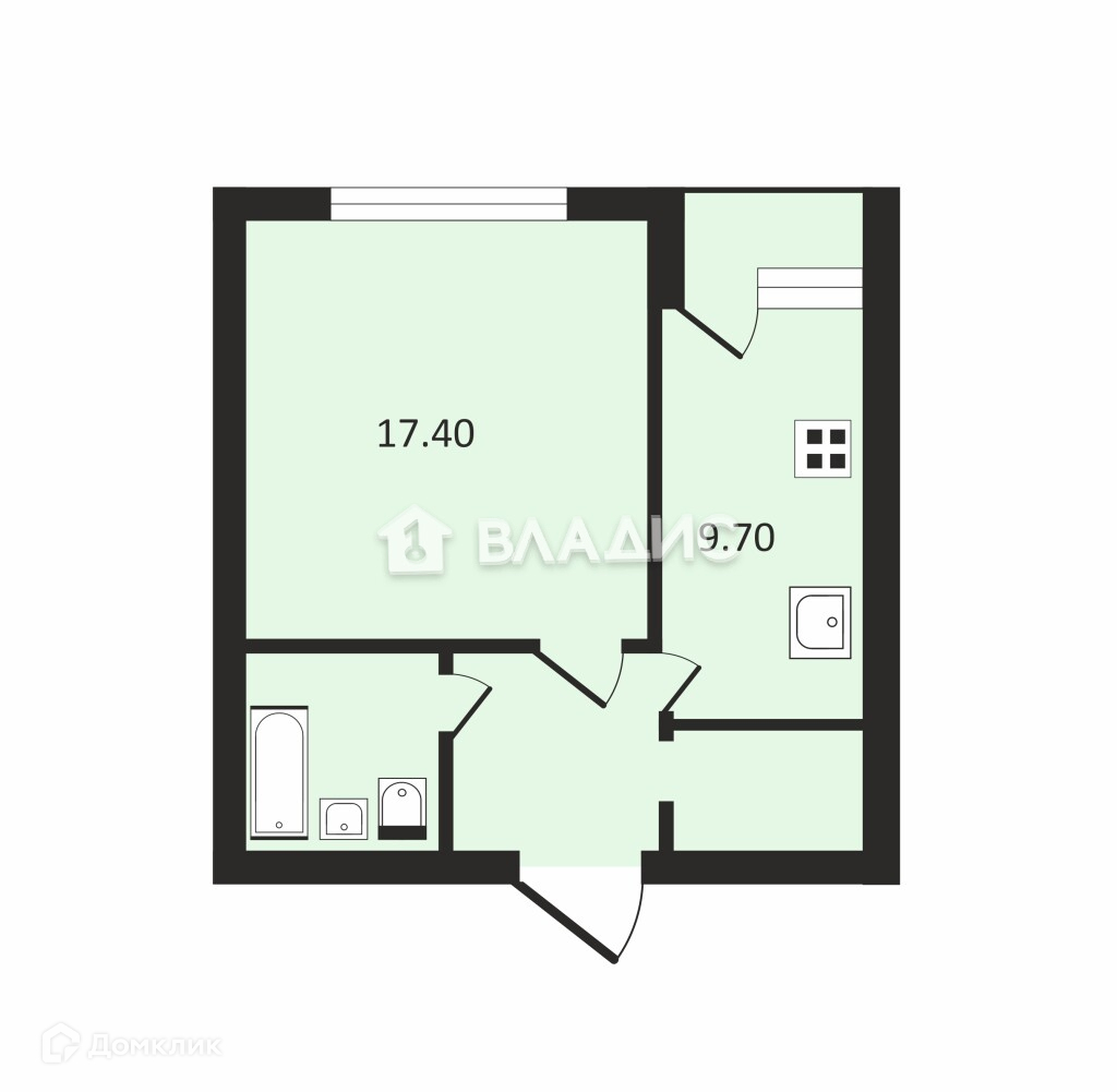 Жилая площадь 17.7 м2