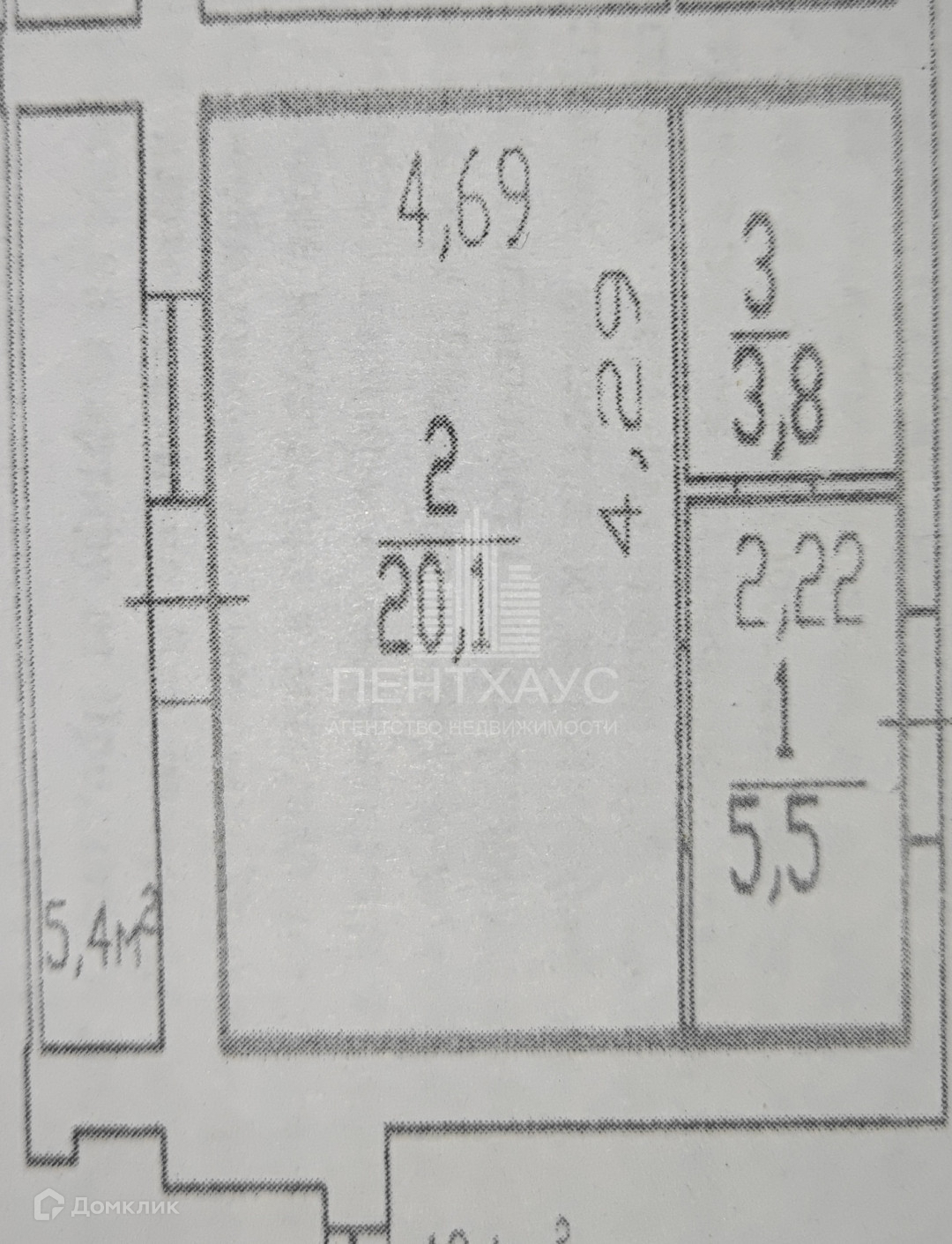 Жилая площадь 20.1 м2