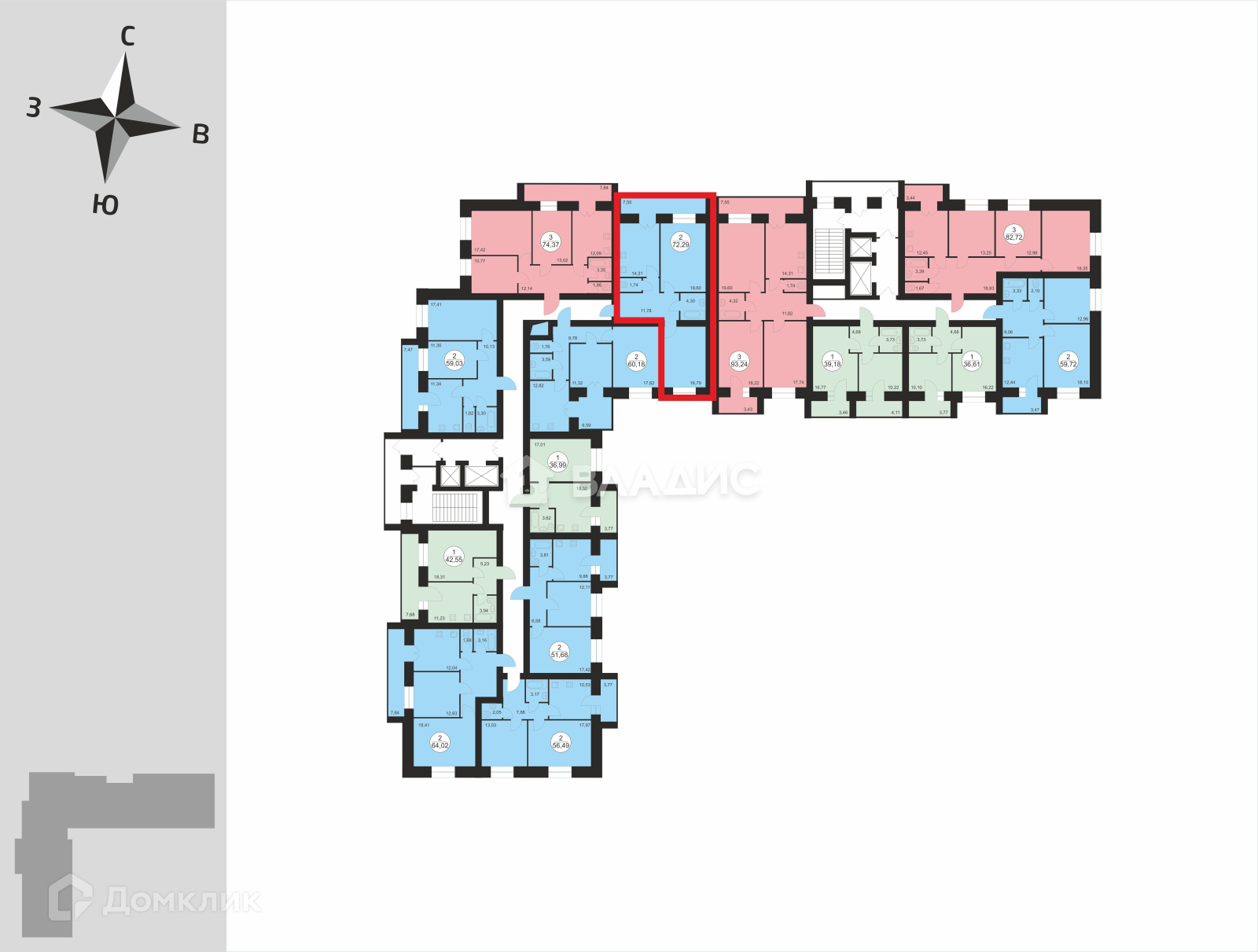 Общая площадь 73.73 м2
