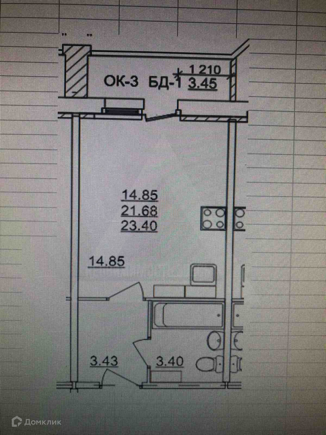 Общая площадь 23.4 м2