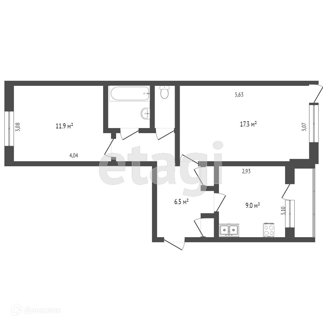 Общая площадь 53.2 м2