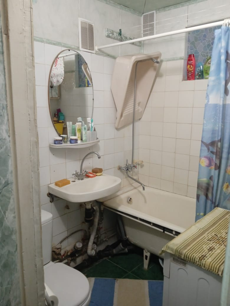 Ванная-плитка, установлены счётчики, заменены трубы горячего и холодного водоснабжения.