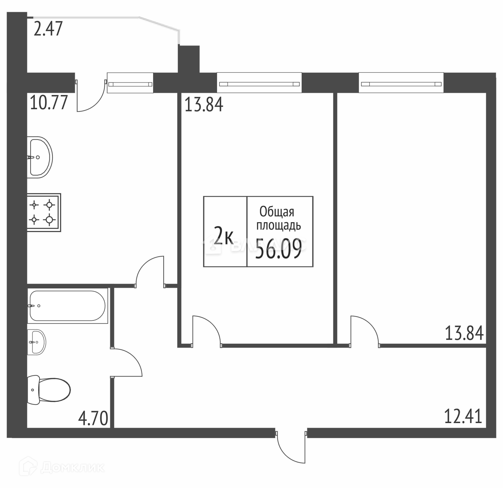 Общая площадь 56 м2