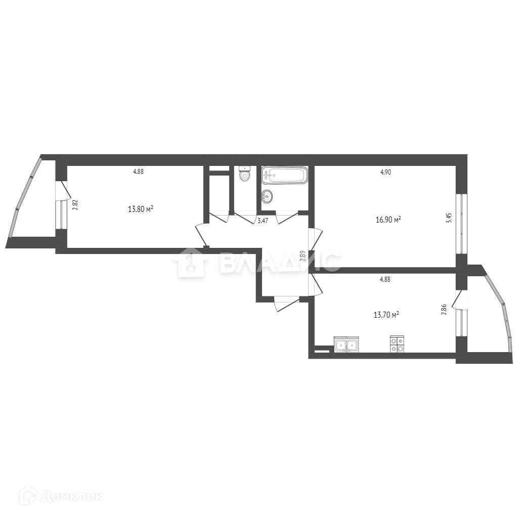 Балкон, лоджия 2 лоджии