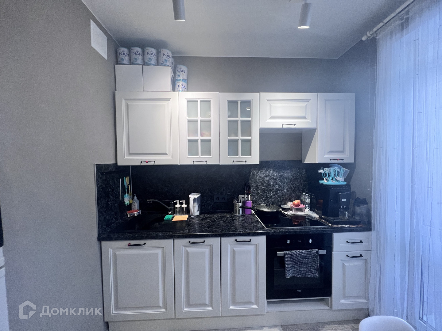 Светлая, теплая, сделан качественный ремонт. В квартире остается кухонный гарнитур со встроенной техникой, шкаф в коридоре. Заезжай и живи!